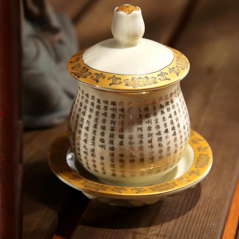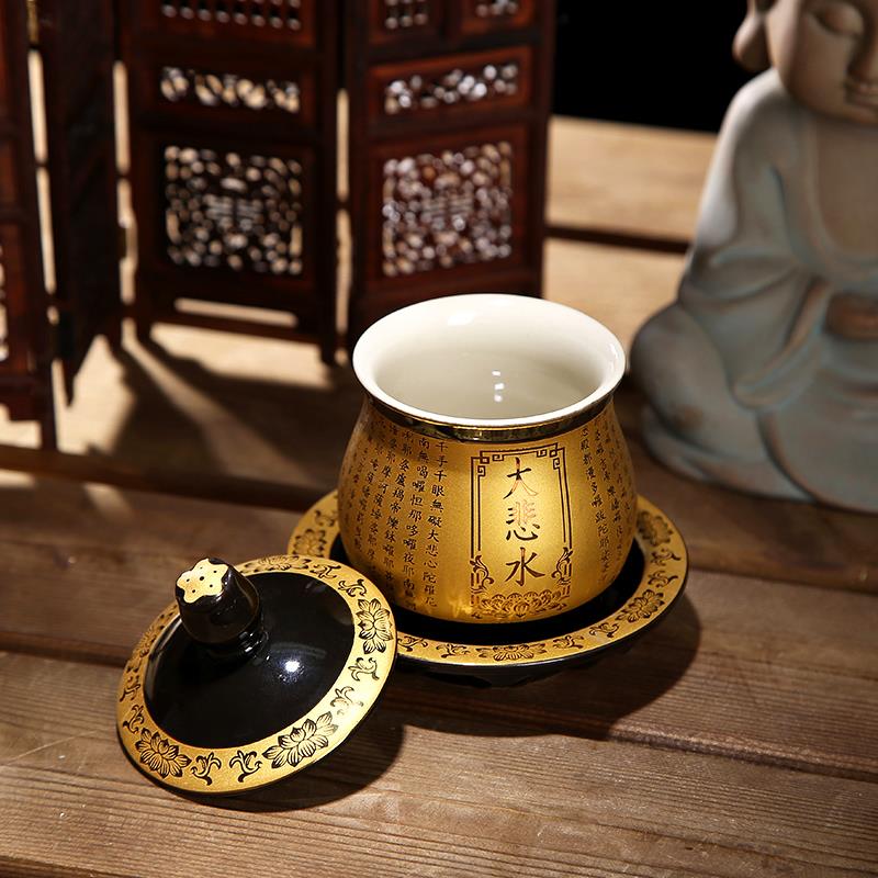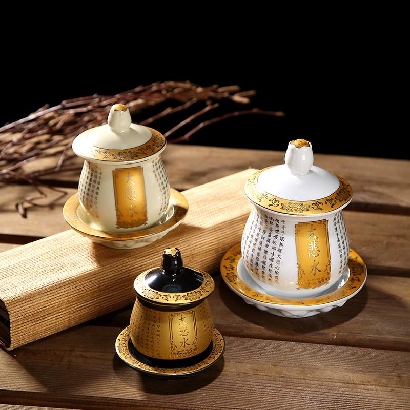 秦歌陶瓷心经大悲水供杯观音圣水杯供佛水杯佛前供杯摆件佛具用品