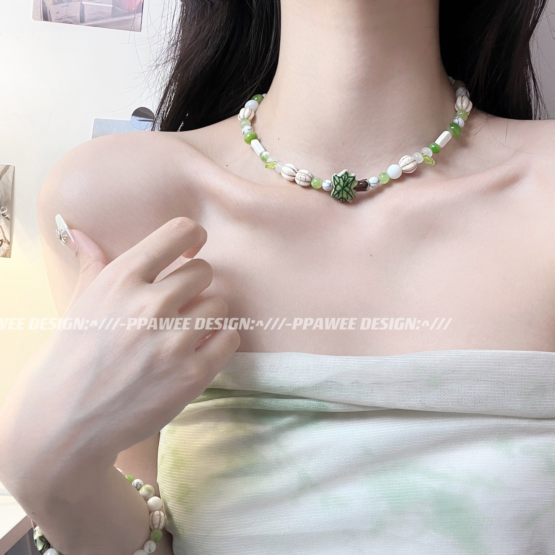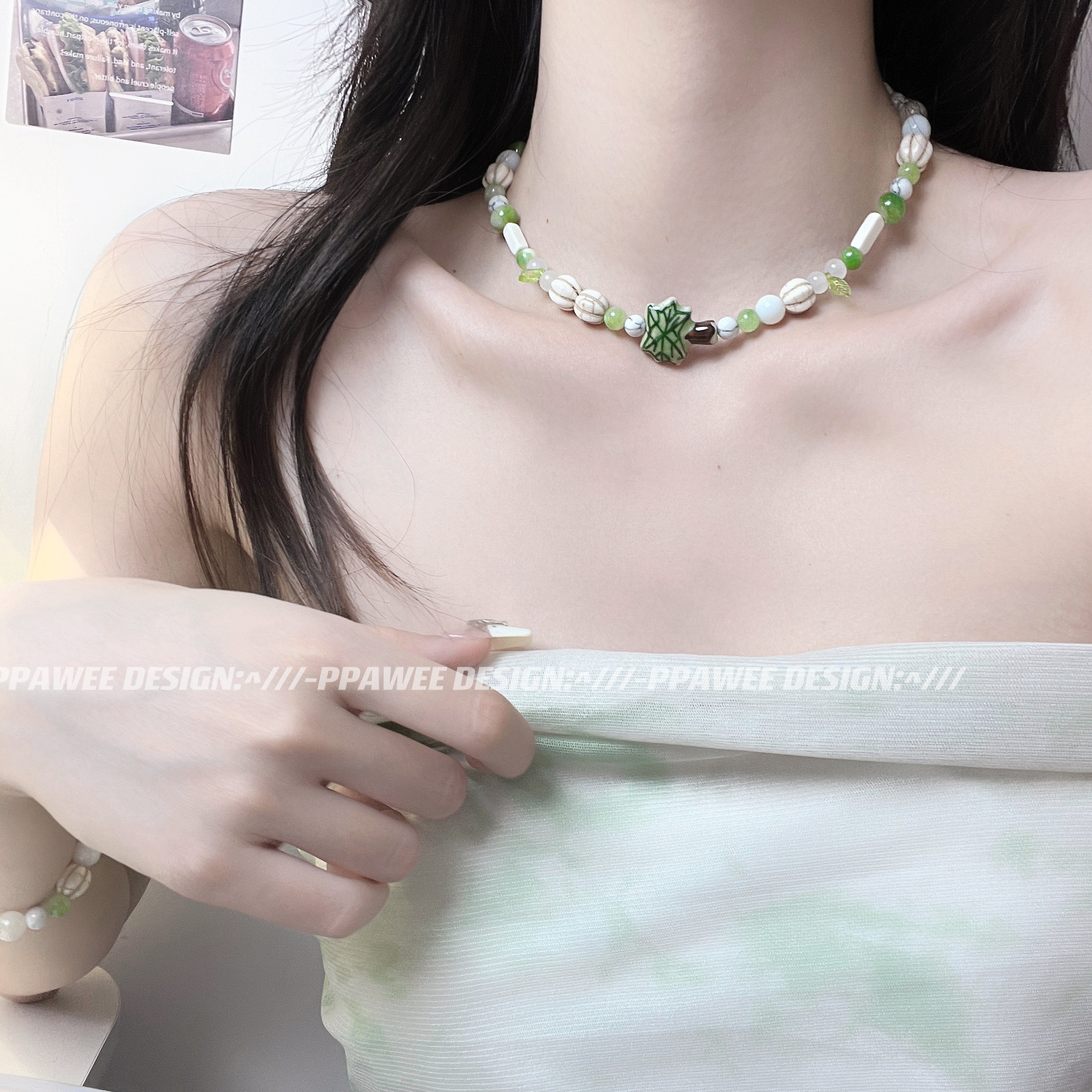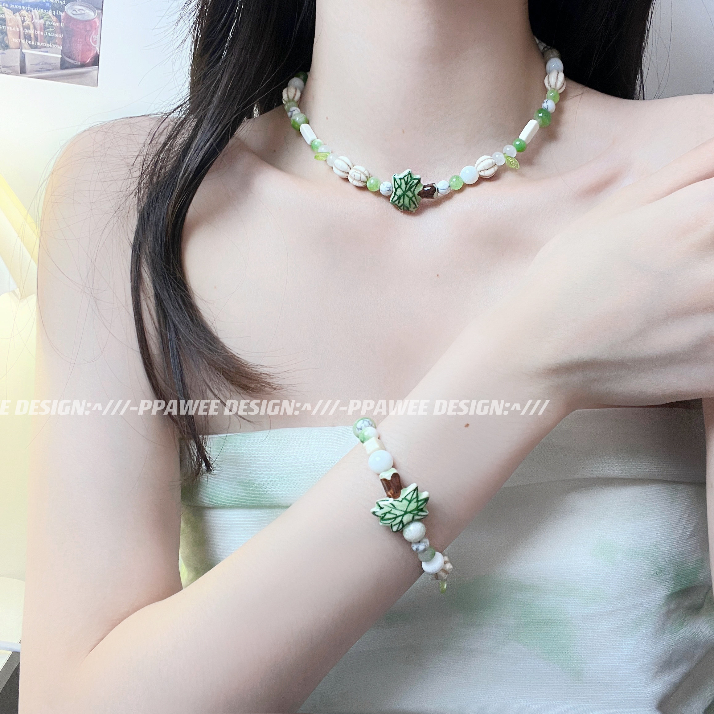 海边度假风椰树颈链夏日绿色串珠项链小众设计感可爱陶瓷森系手链