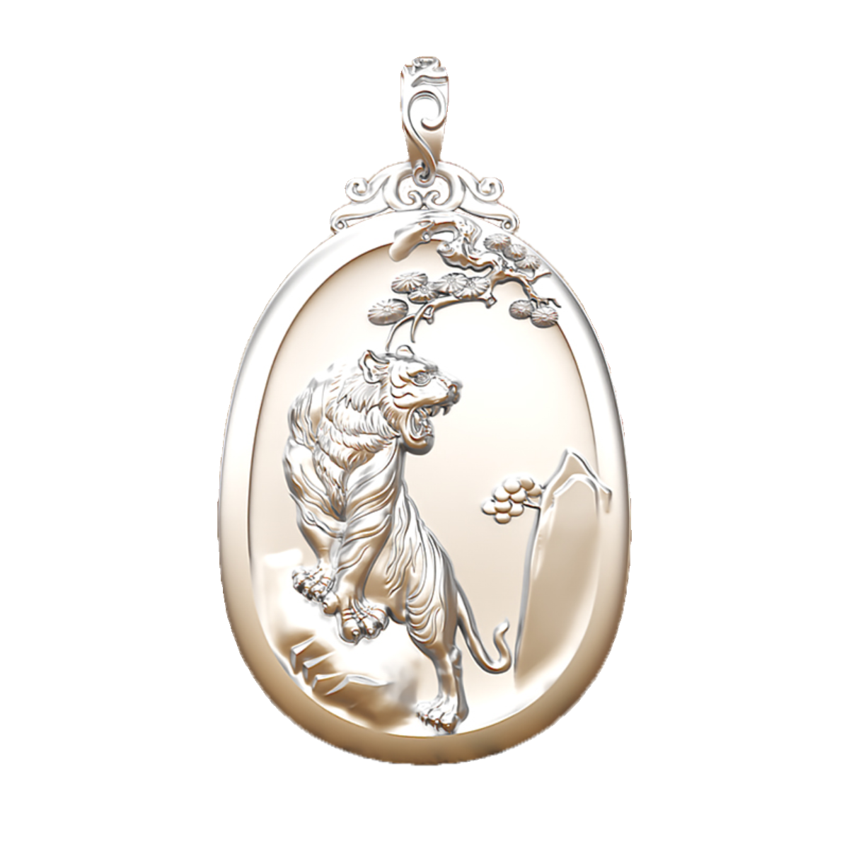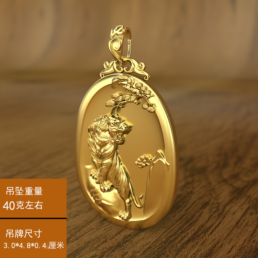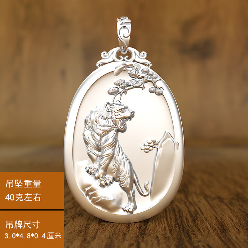 999纯银 上山虎足银吊坠 生肖守护神老虎项链男猛虎上山霸气时尚