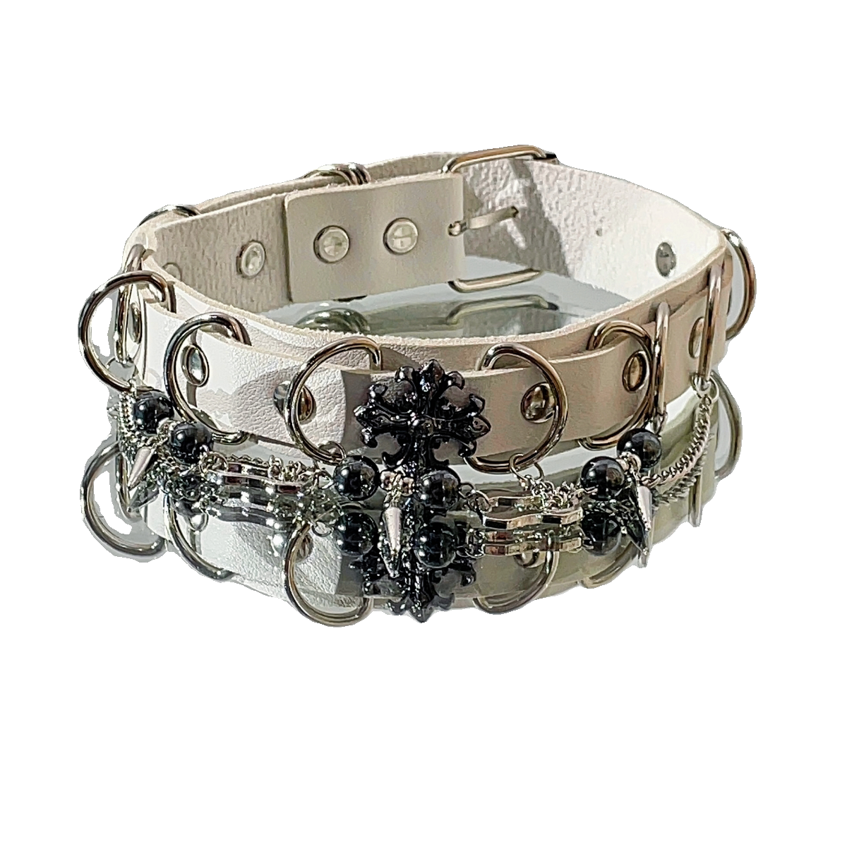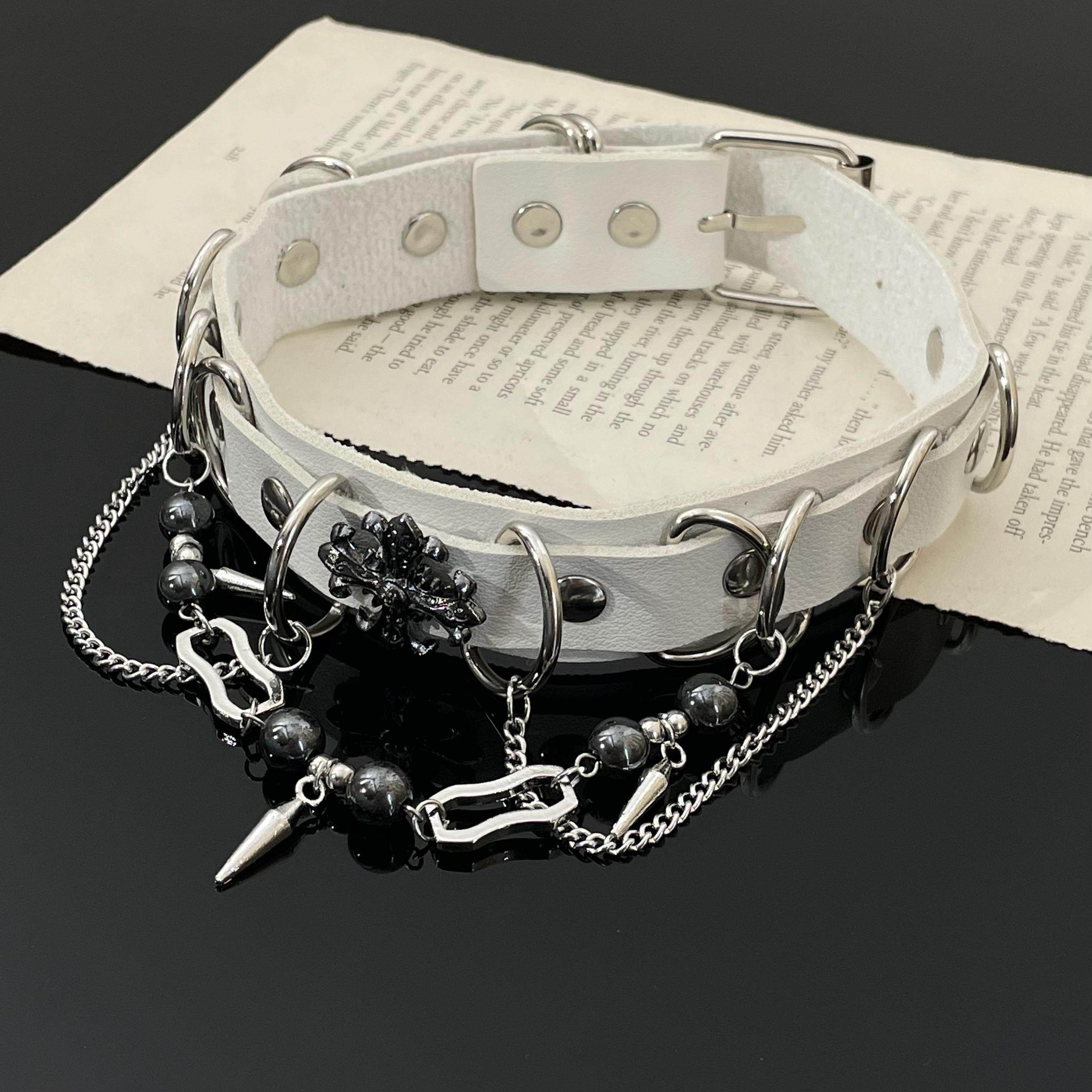 黑姑姑饰品哥特风朋克chocker白色皮革项圈脖子配饰项链颈链女