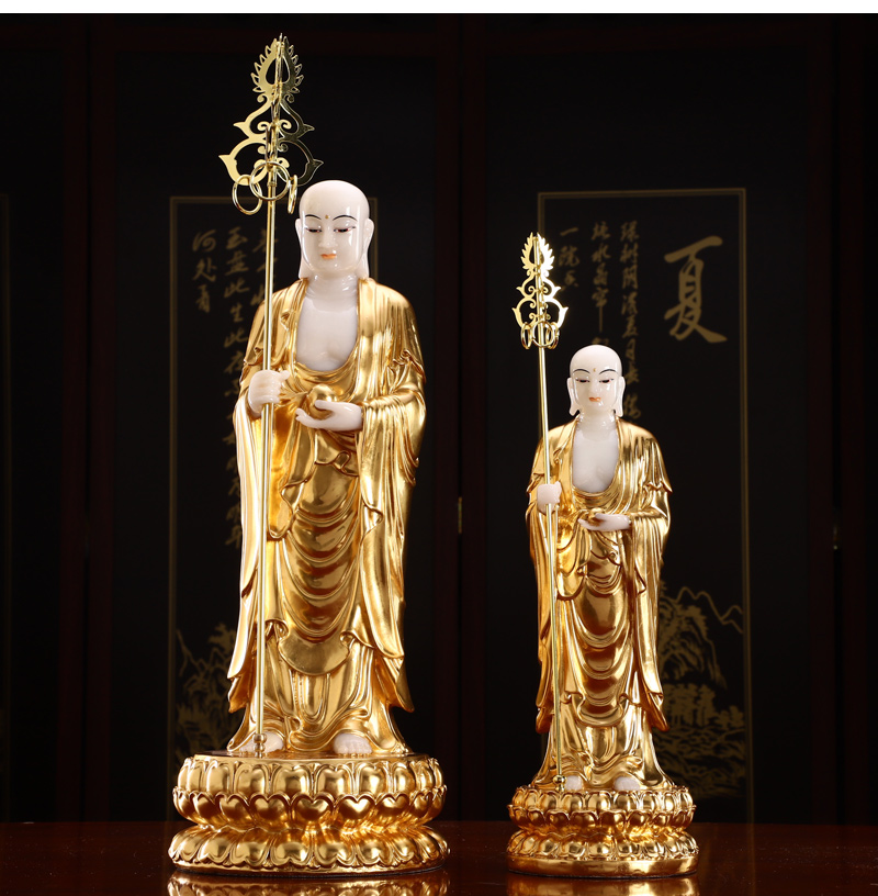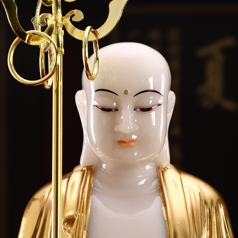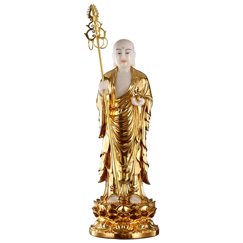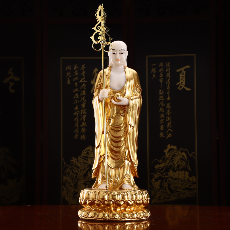 地藏王佛像供奉家用九华山地藏菩萨站立地藏王菩像摆件汉白玉贴金