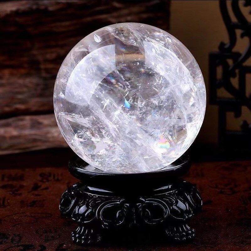 厂供天然白水晶球摆件客厅家用进门玄关卧室家居白色大小原石