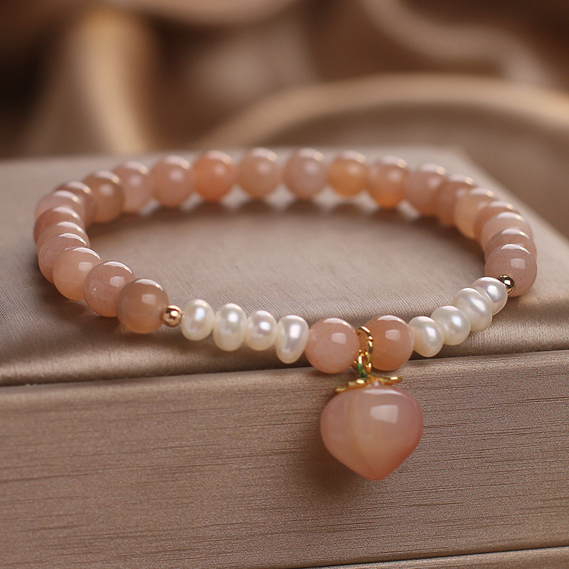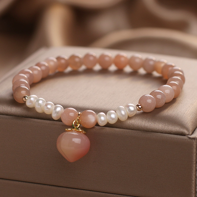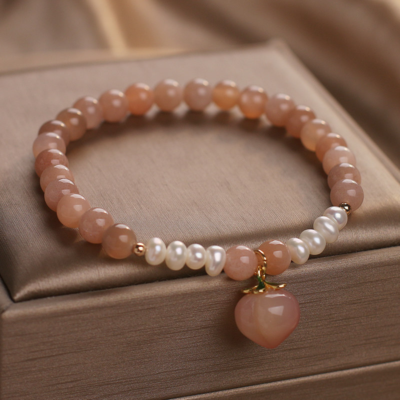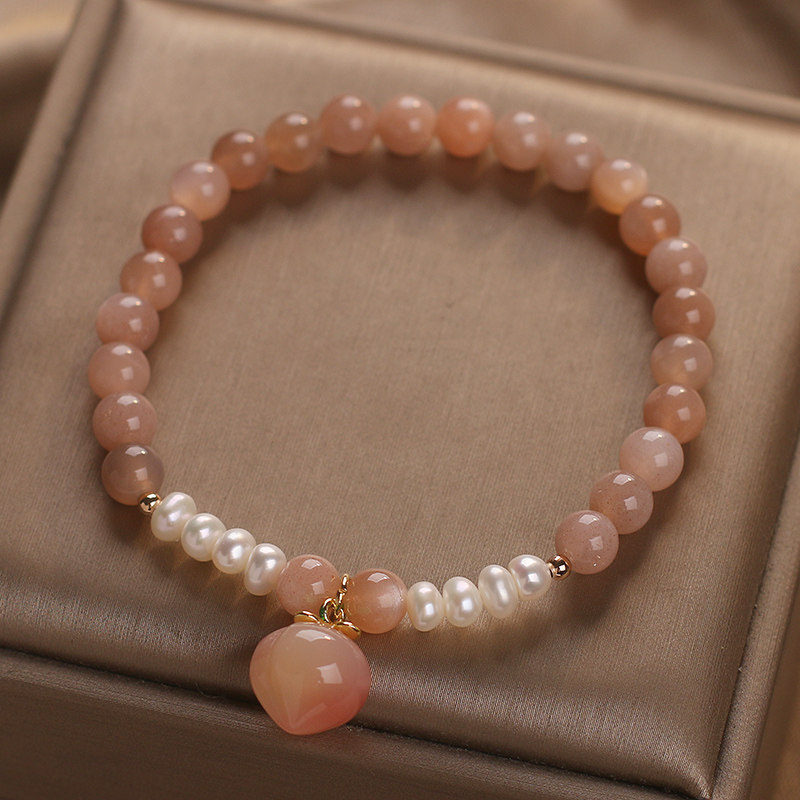 太阳石橙色月光石水晶手链女轻奢小众精致水蜜桃吊坠珍珠串珠手串