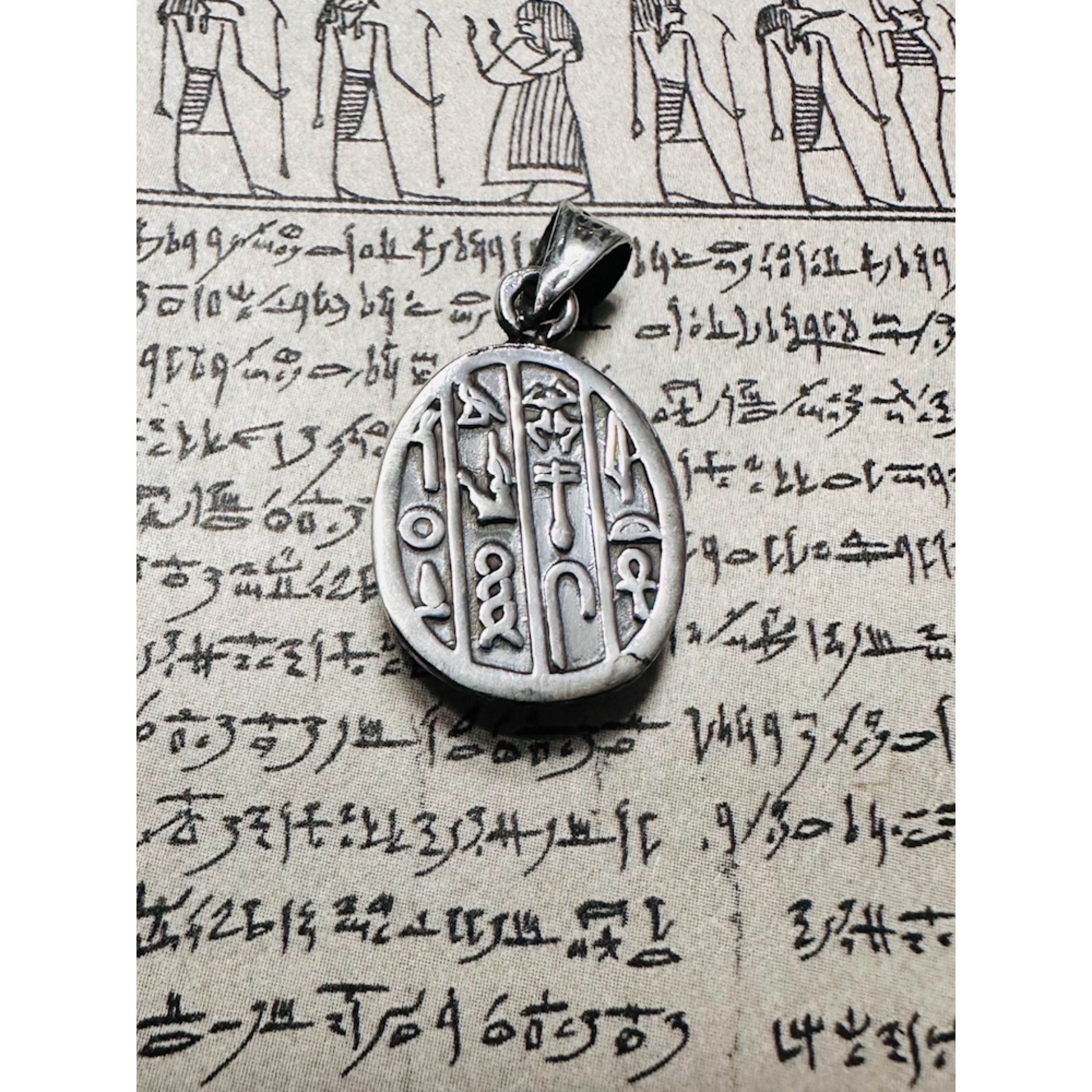 现货埃及银饰暗黑风古埃及圣日之光法老王圣甲虫双面浮雕银吊坠