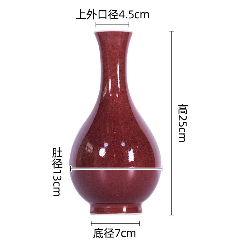 仿古红色陶瓷花瓶景德镇红釉柴窑味底高档装饰摆件博古架收藏品