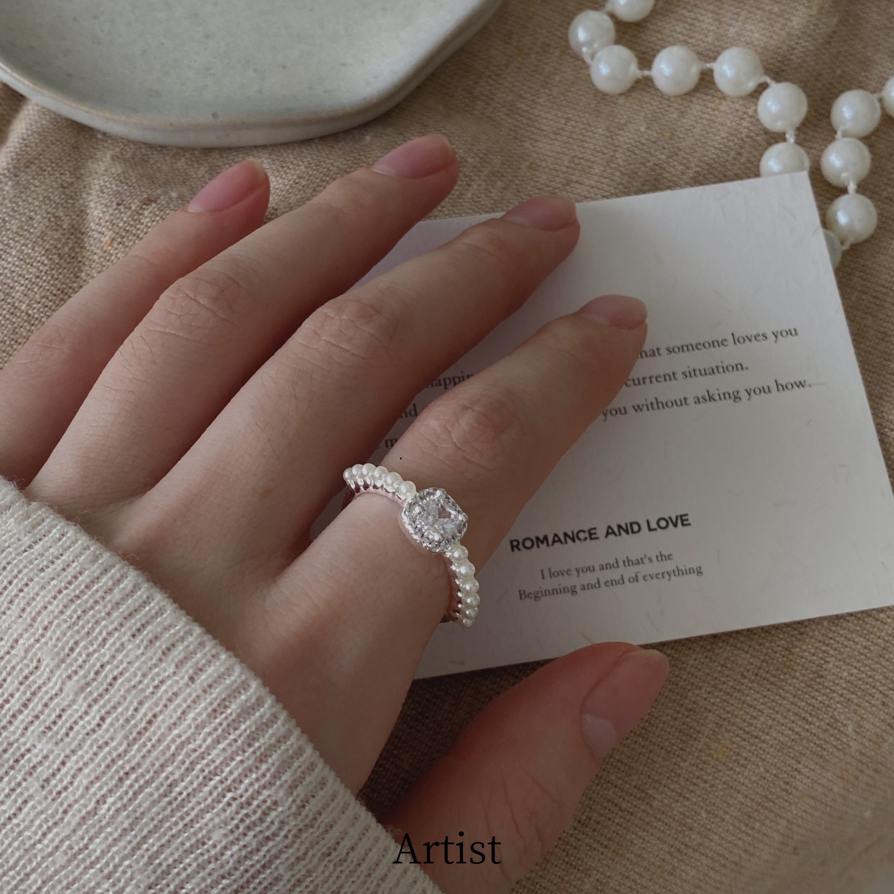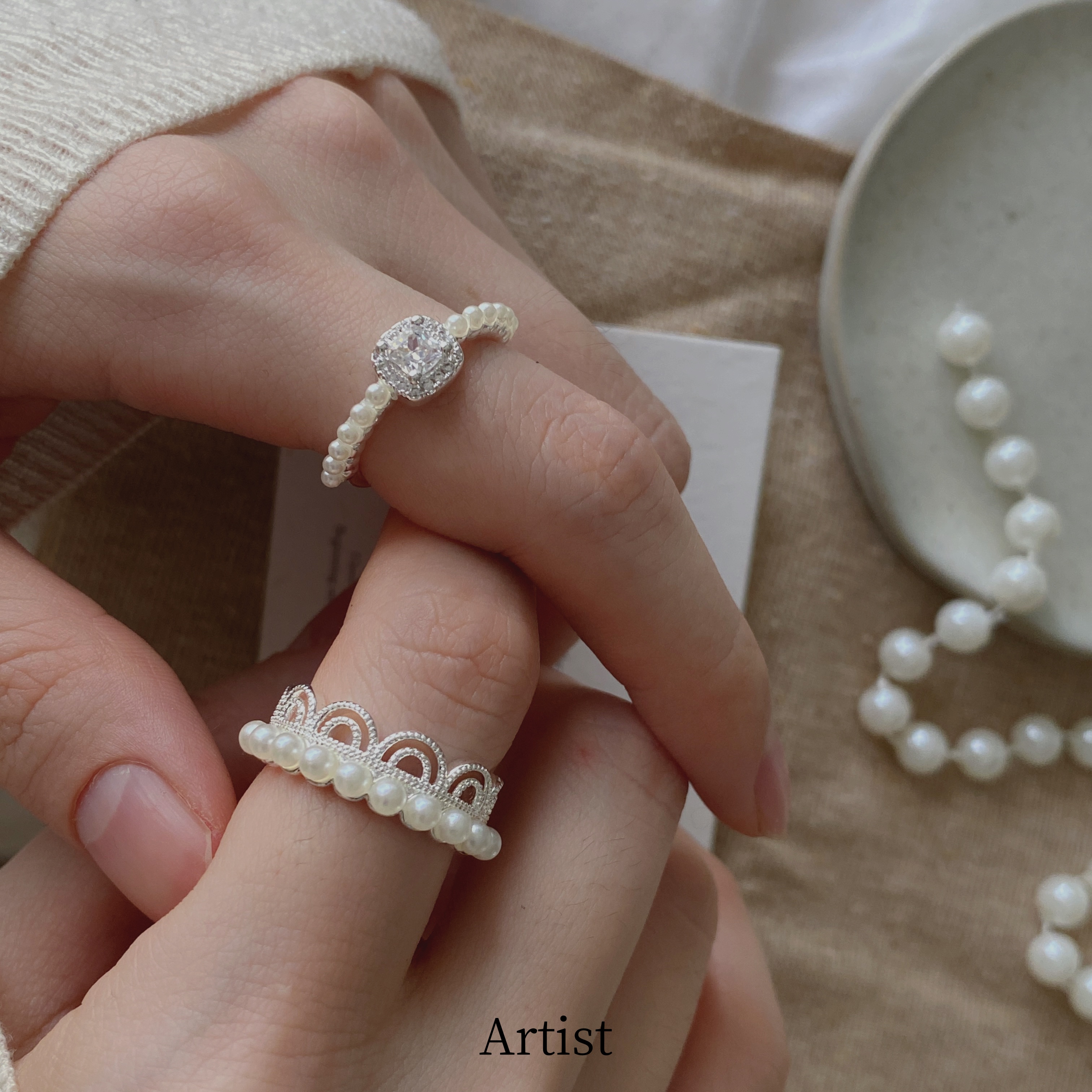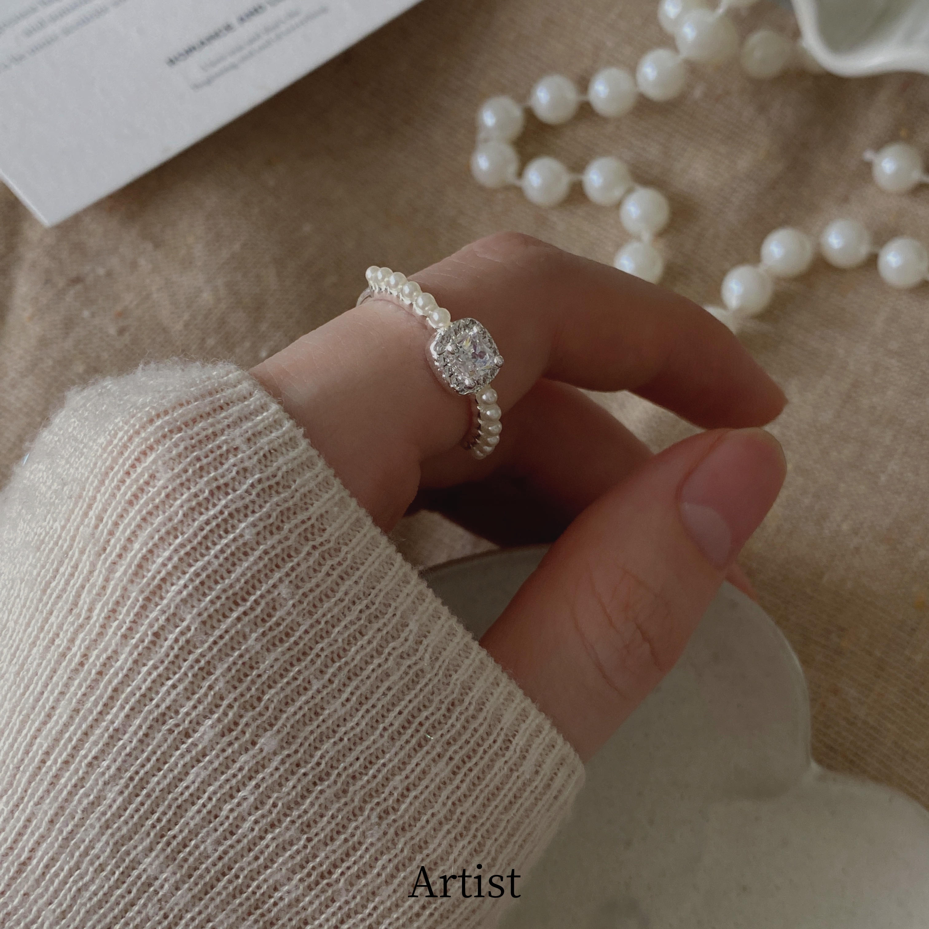 法式复古甜美珍珠戒指女轻奢高级感小众设计开口可调节指环尾戒