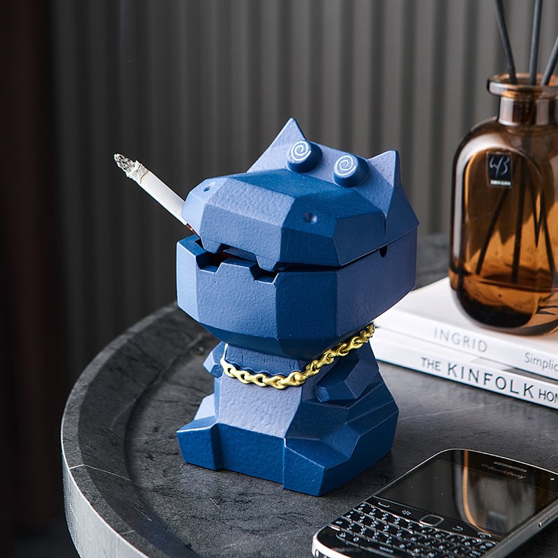 创意可爱带盖烟灰缸家用客厅茶几卡通几何办公室桌面装饰品小摆件