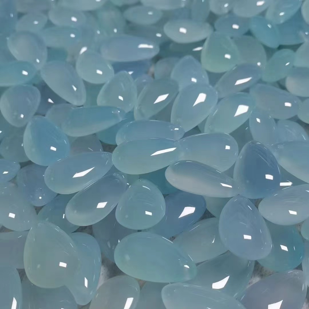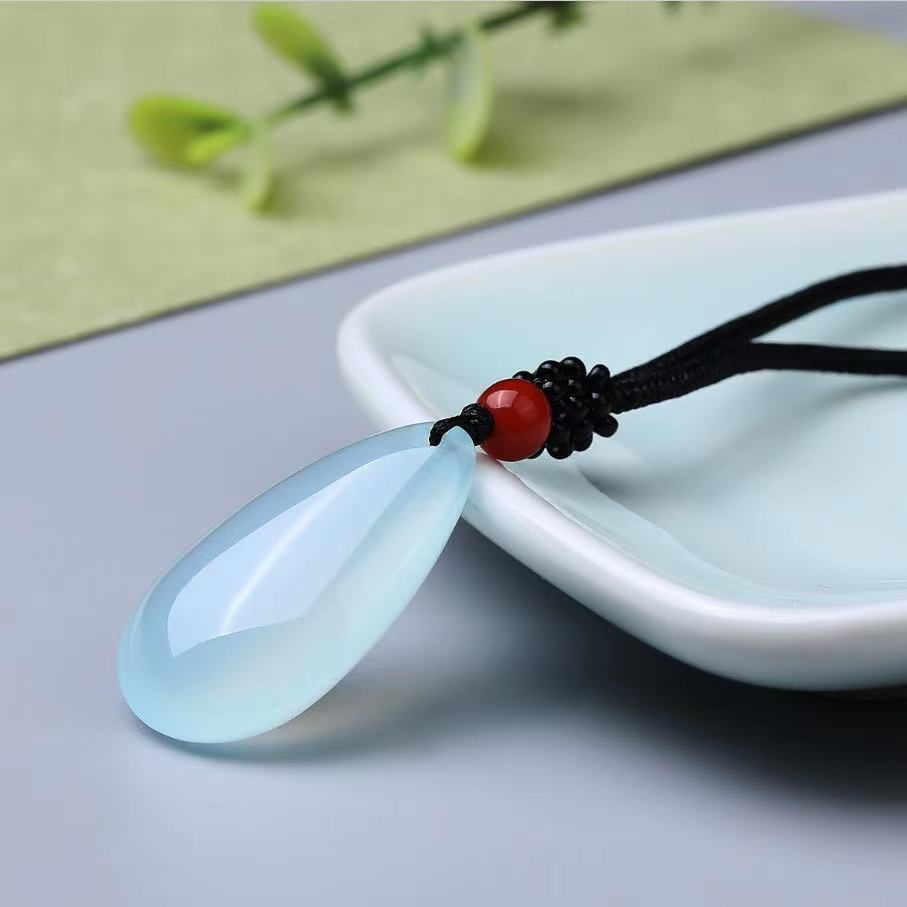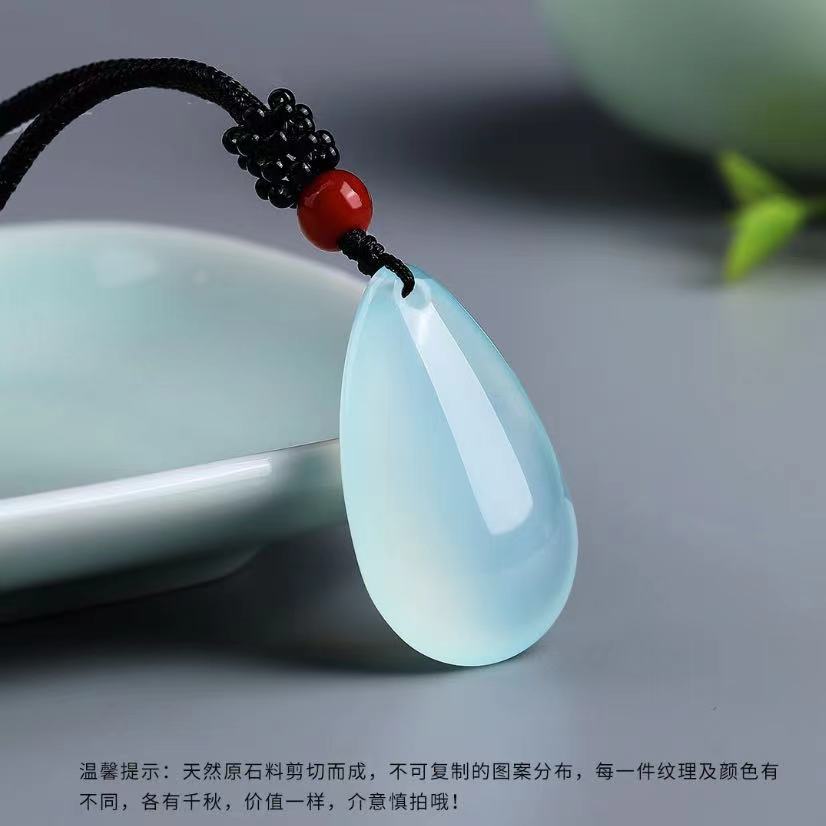 天然冰种水滴吊坠冰蓝色水滴吊坠海蓝宝玉石吊坠冰蓝款