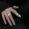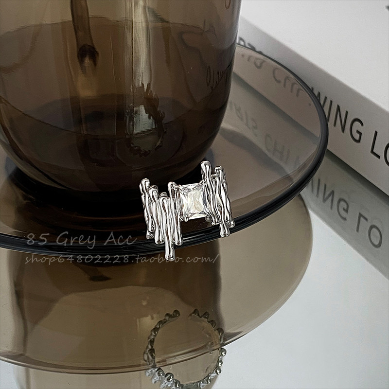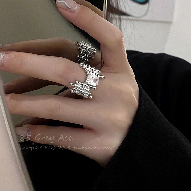 85度灰不规则交错宝石食指戒指女ins轻奢小众设计高级感开口指环