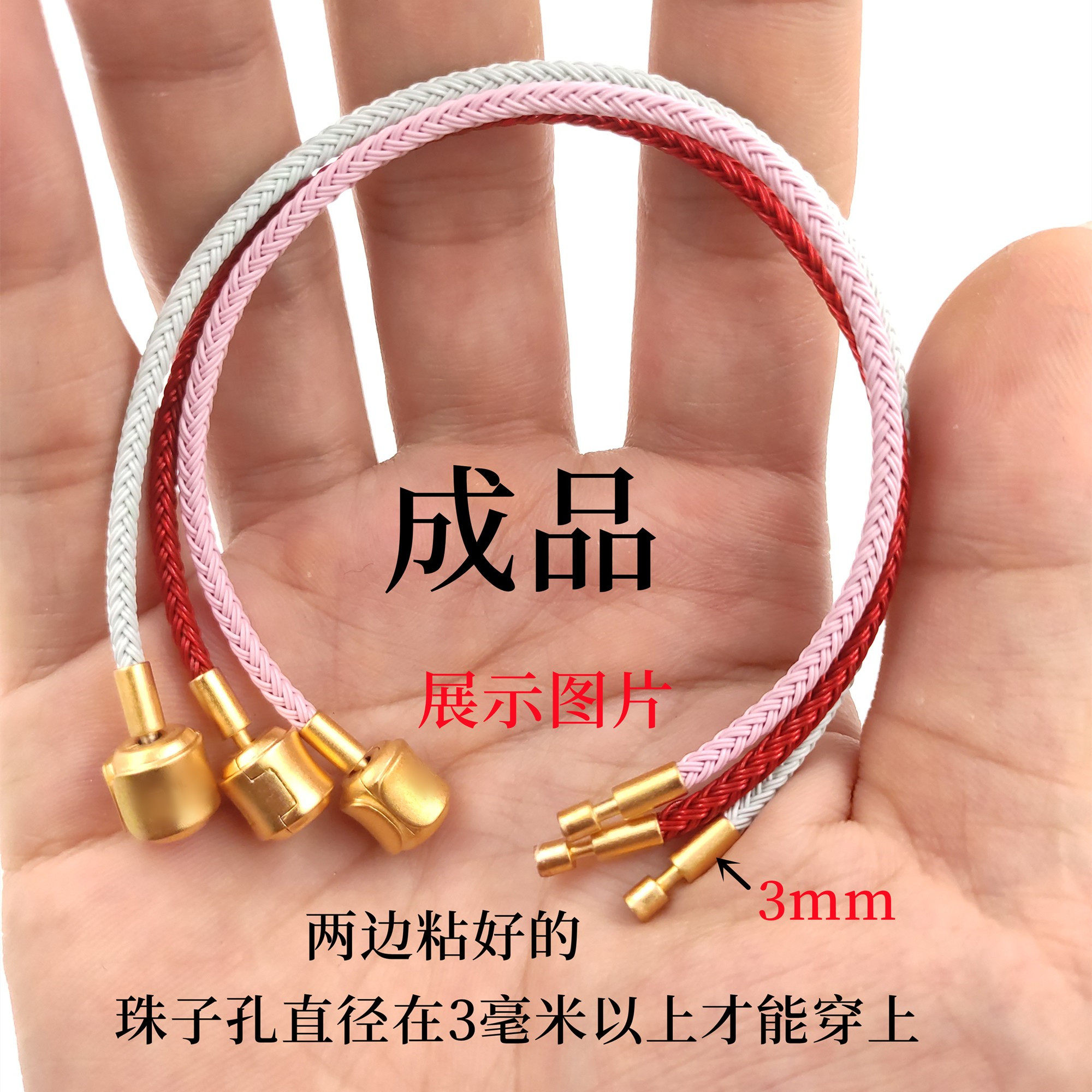 周生生同款手绳2.2mm不锈钢丝绳红色适用皮绳手链女3D黄金串珠