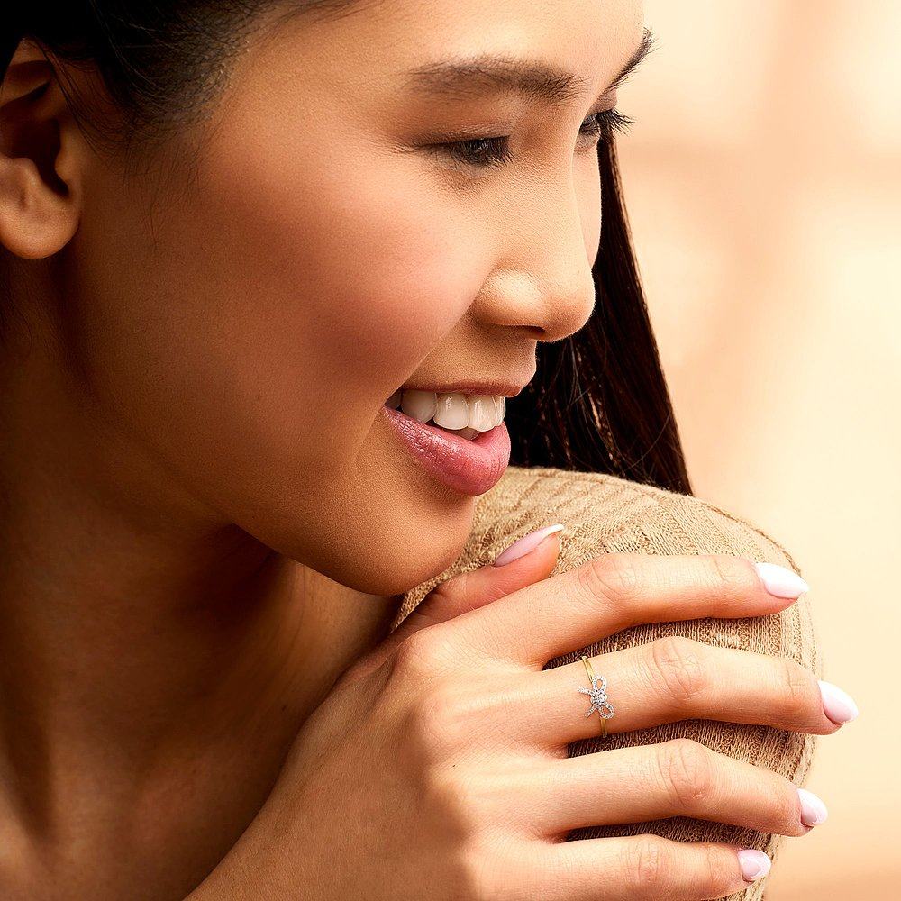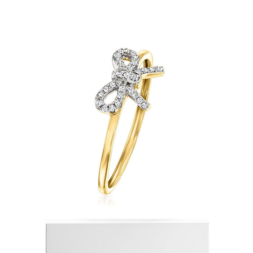 自营 RS Pure by Ross-Simons 14kt 黄金镶钻蝴蝶结戒指 - 白色