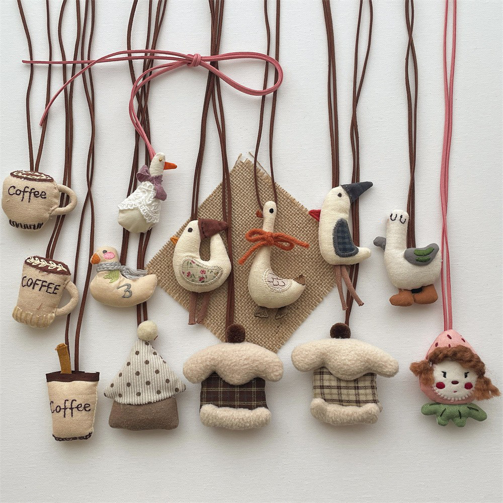 2件包邮 韩国布艺充棉小动物儿童项链可爱卡通大白鹅吊坠包包挂件