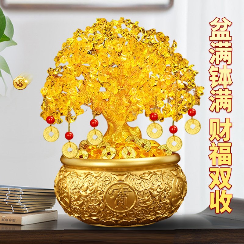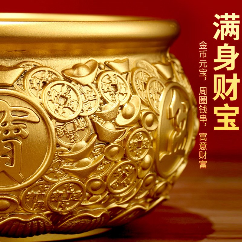 黄铜聚宝盆摆件招财发财树客玄关办公室聚财N摇钱树黄铜米缸存钱