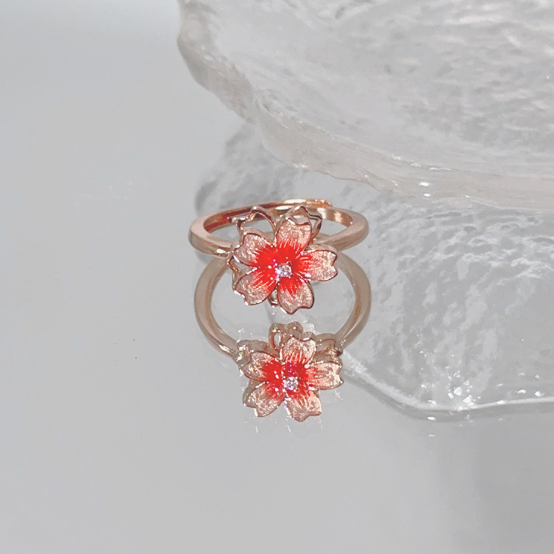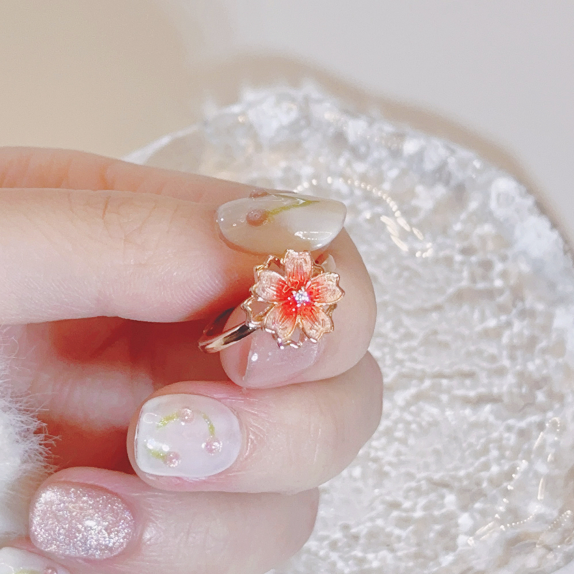 HOWEET旋转桃花戒指指环春夏小众可旋转轻奢甜酷风粉色开口可调节