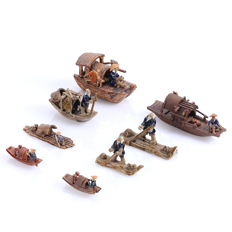 家居鱼缸造景园林盆景沙盘微景观建筑模型装饰小摆件陶瓷工艺品船