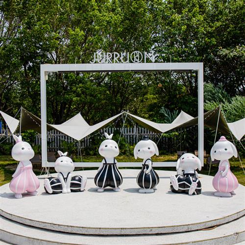 大型玻璃钢几何兔子雕塑动物灯笼兔摆件公园草坪商场售楼部装饰品