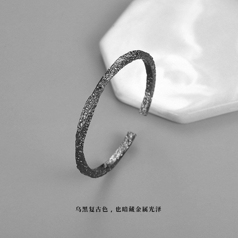 复古乌藤手镯男款潮流个性开口女手环黑色莫比乌斯环男士实心镯子