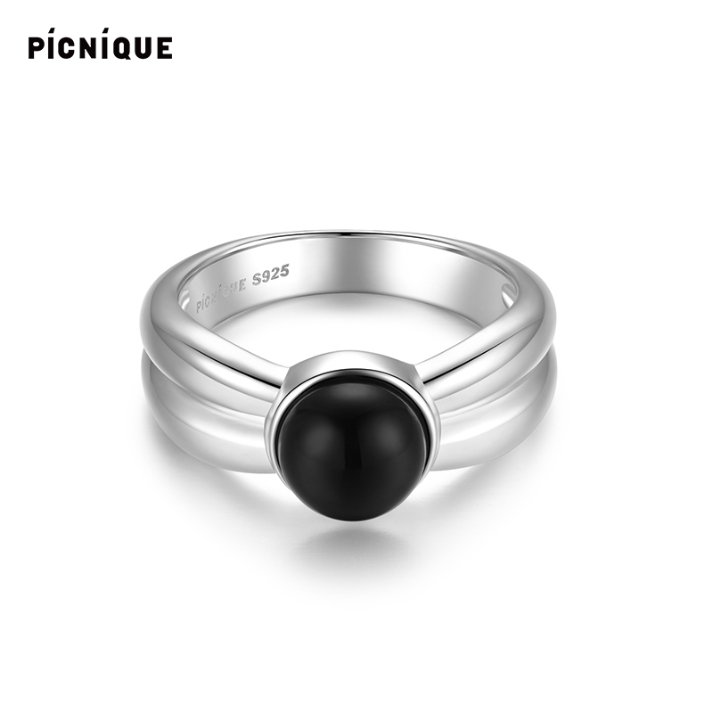 Picnique 925纯银复古黑玛瑙简约领结型小众设计原创设计师戒指