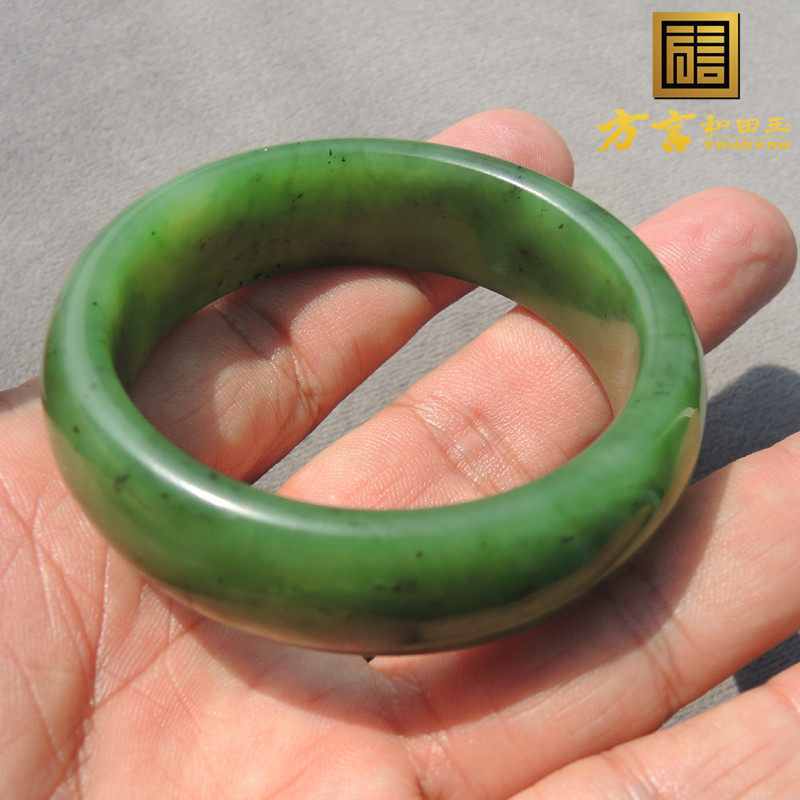 方言和田玉巨漏俄老坑珍稀绿色名品翠绿色碧玉52正装精品手镯子R