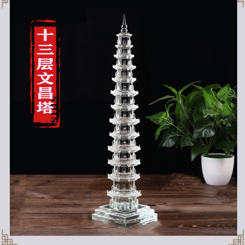 水晶文昌塔十三13层办公室书房学生桌家用摆件金榜题名九9层蓝色