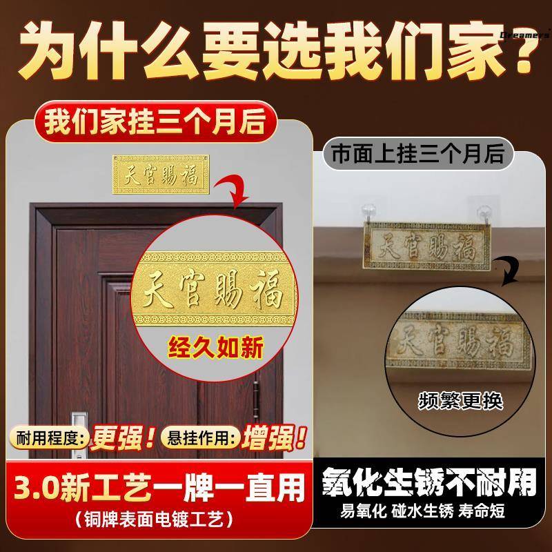 天官赐福门贴挂件牌匾铜入户门对邻居大门对门卧室乔迁送礼厂家