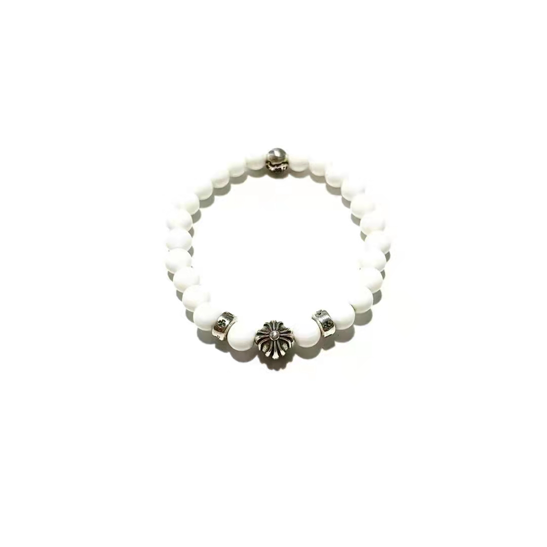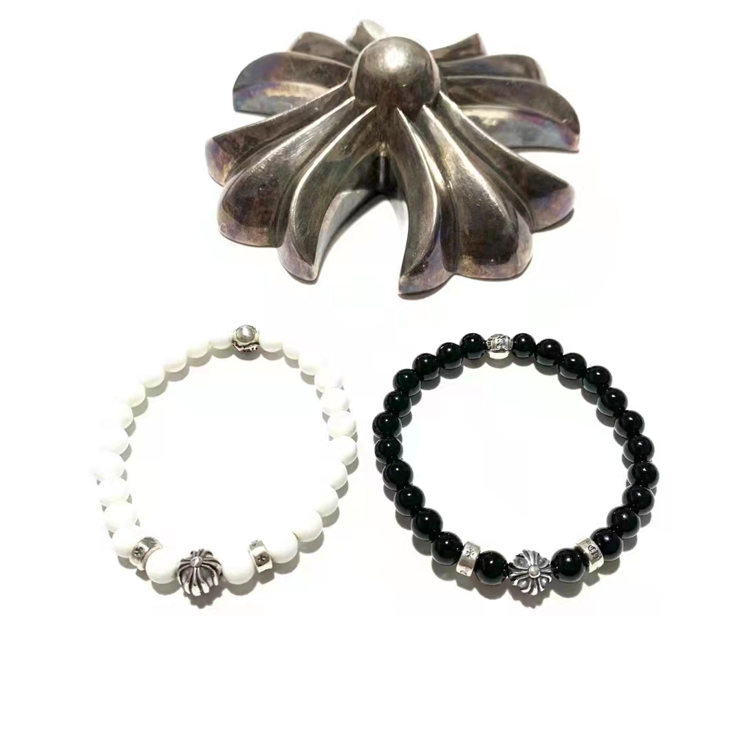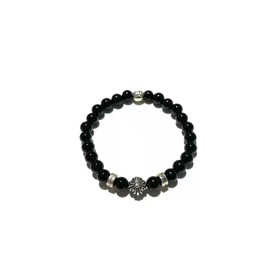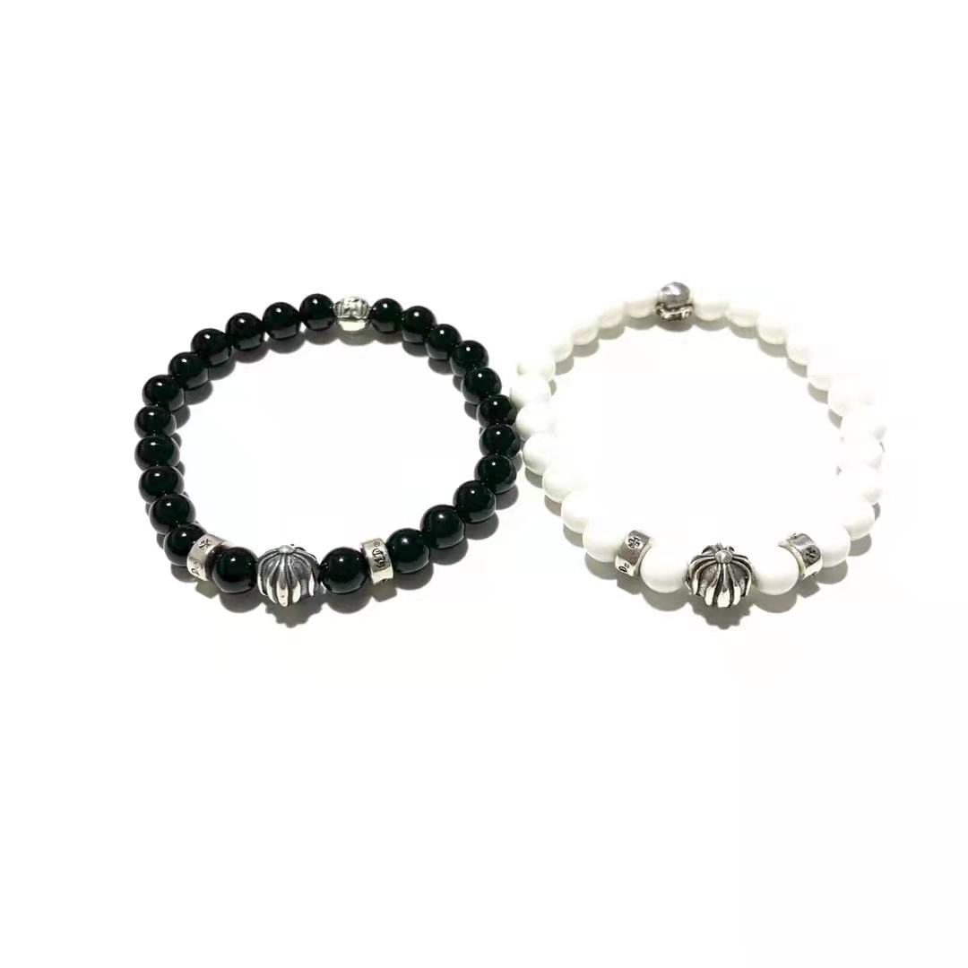 特价复古罗手链S925纯银十字花6mm手串黑曜石手链白色男女款手串