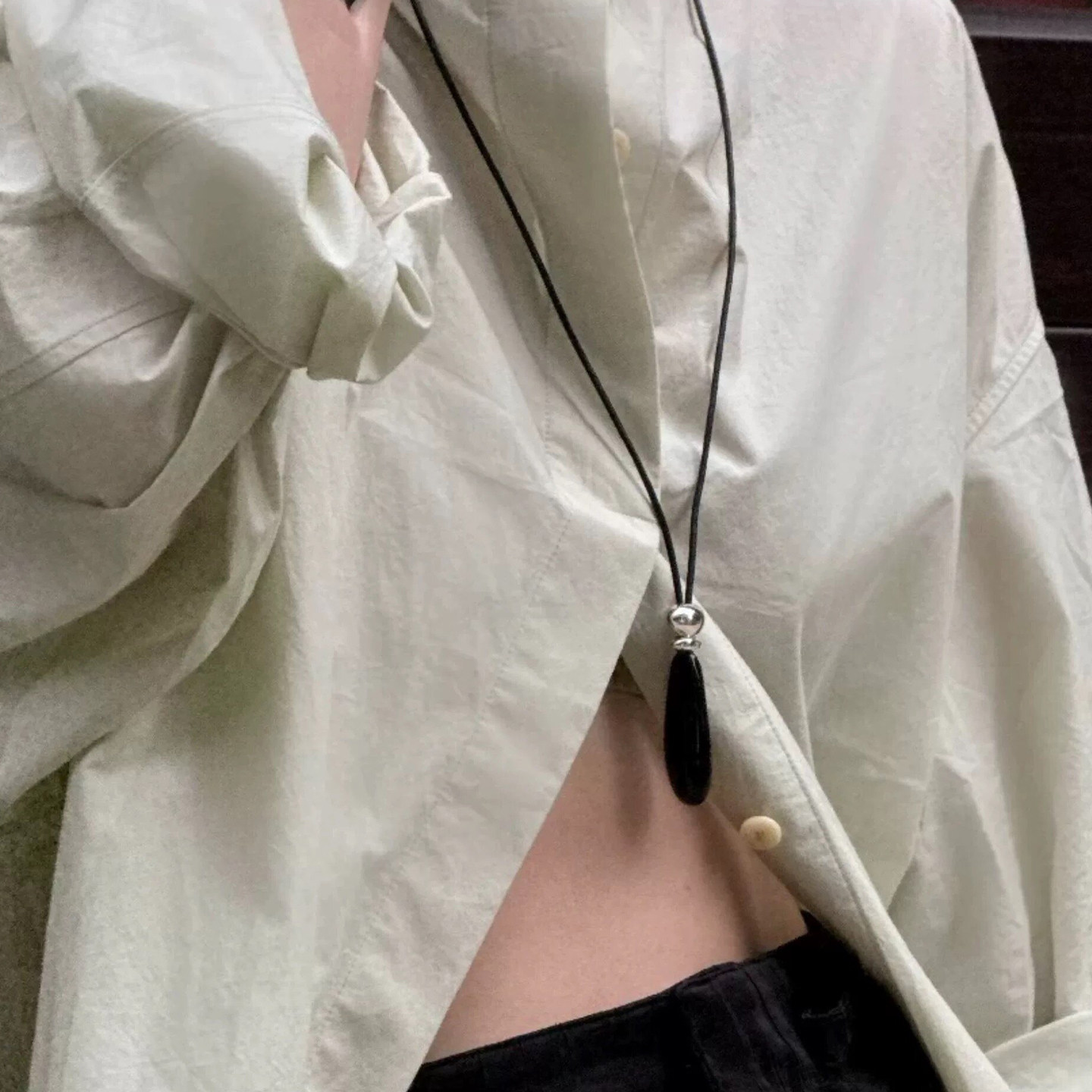 卖耳环的老大爷 水滴吊坠黑色玛瑙高级感气质项链毛衣链