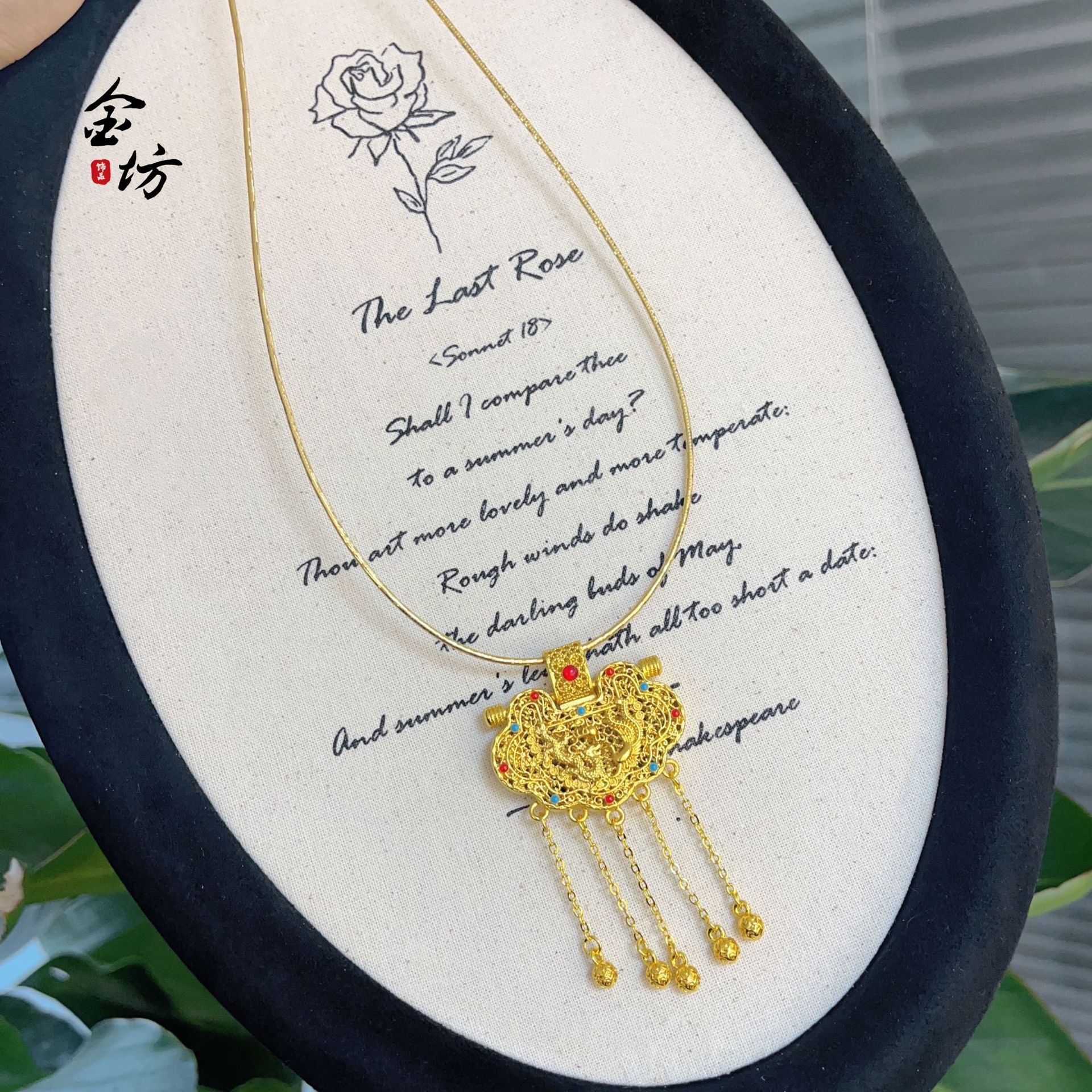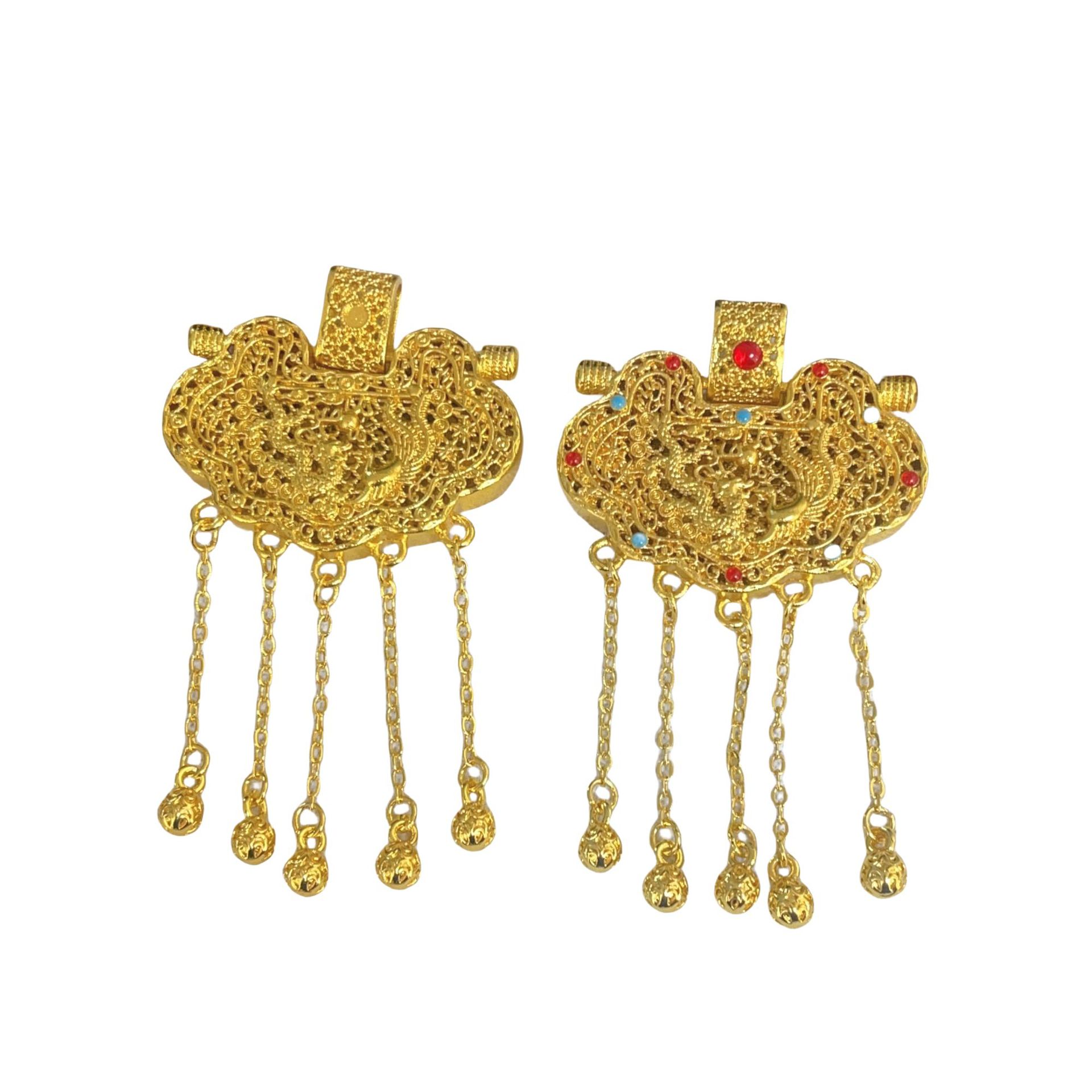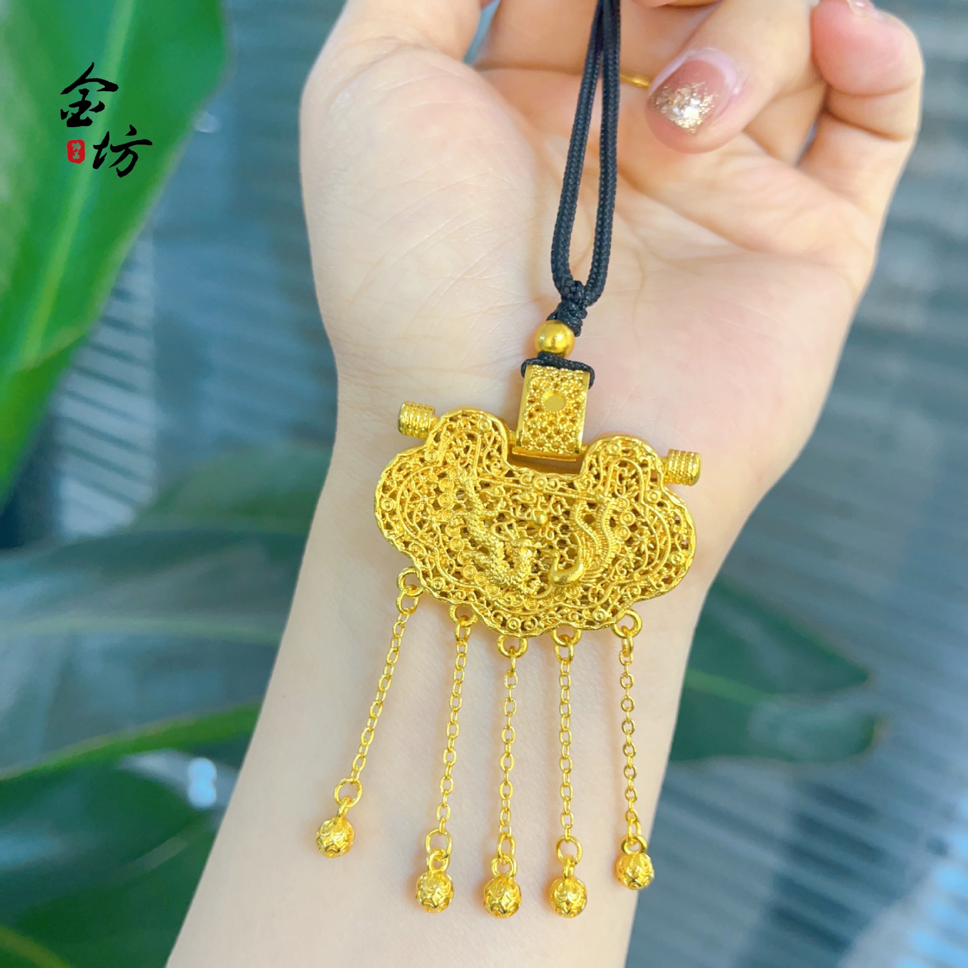 金店同款越南沙金新款花丝镶嵌天子门生流苏龙凤锁包项链国风饰品