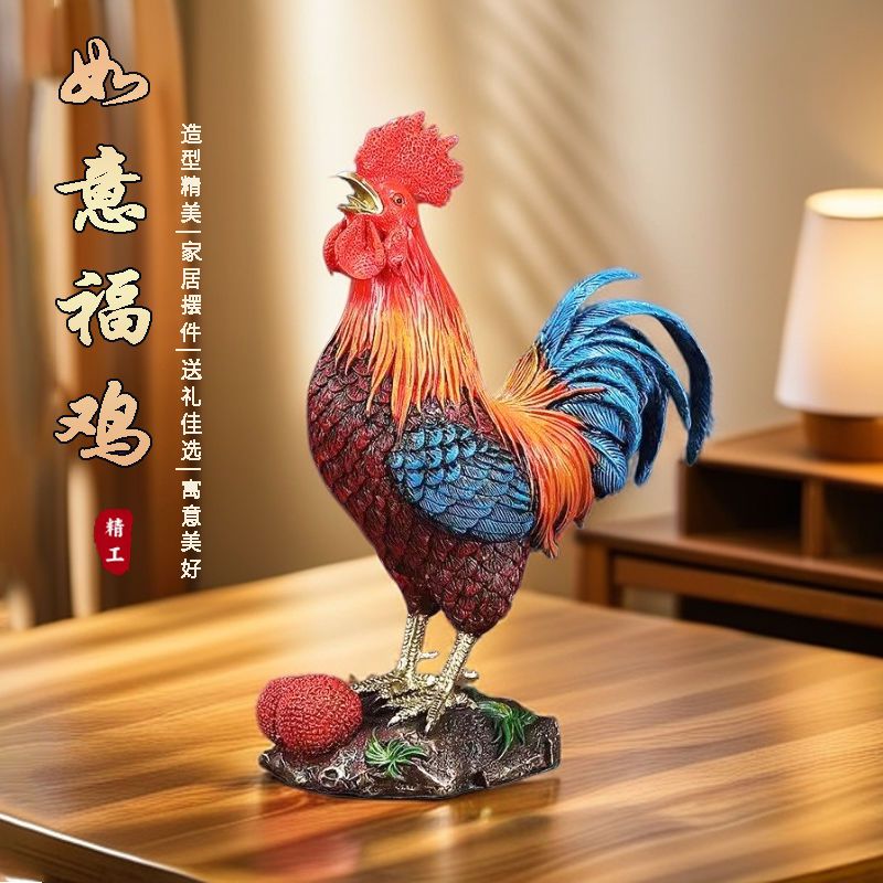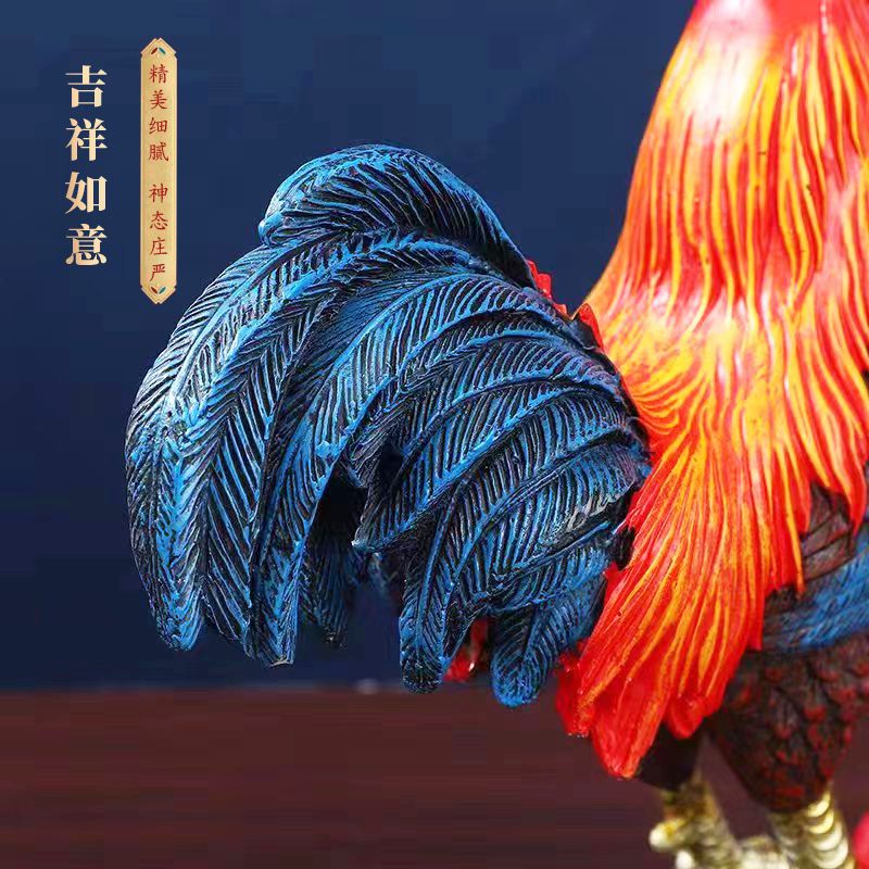 公鸡摆件风水吉祥物招财真五彩大公鸡镇宅生肖乔迁客厅雄鸡模型