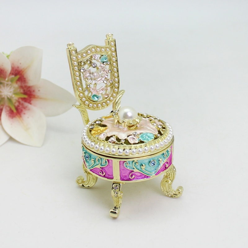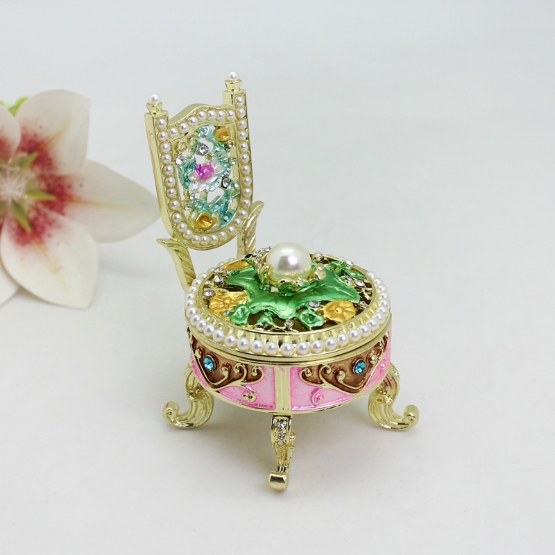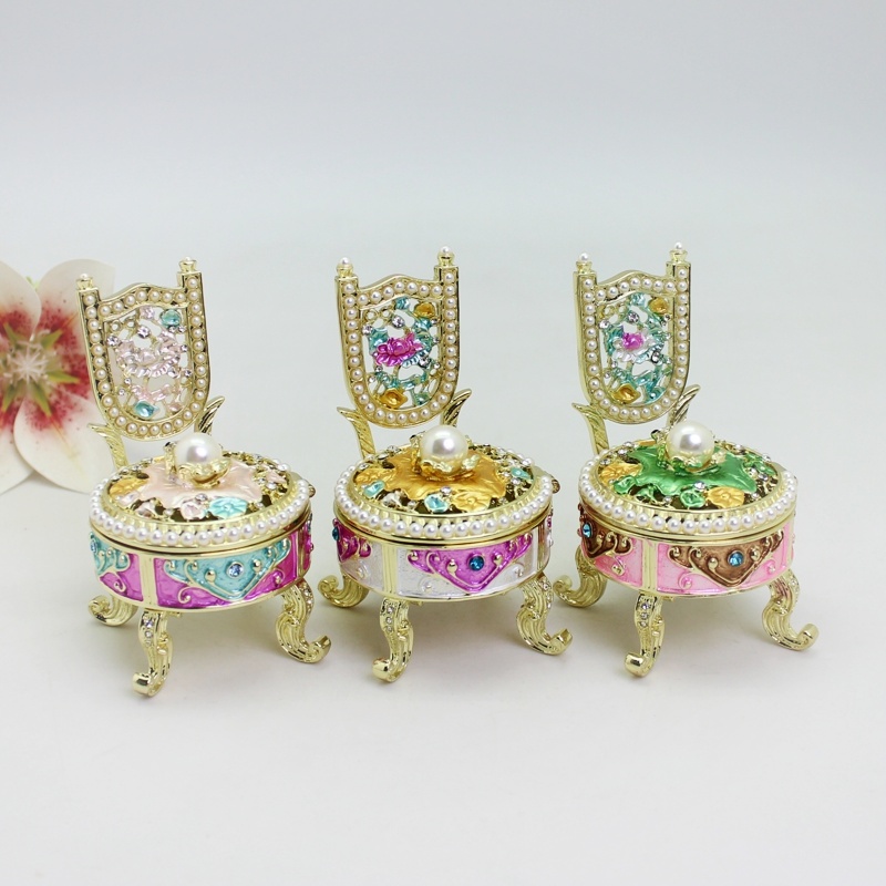 婚庆回赠礼品珍珠公主椅小饰品收纳盒创意家居摆件合金珠宝盒