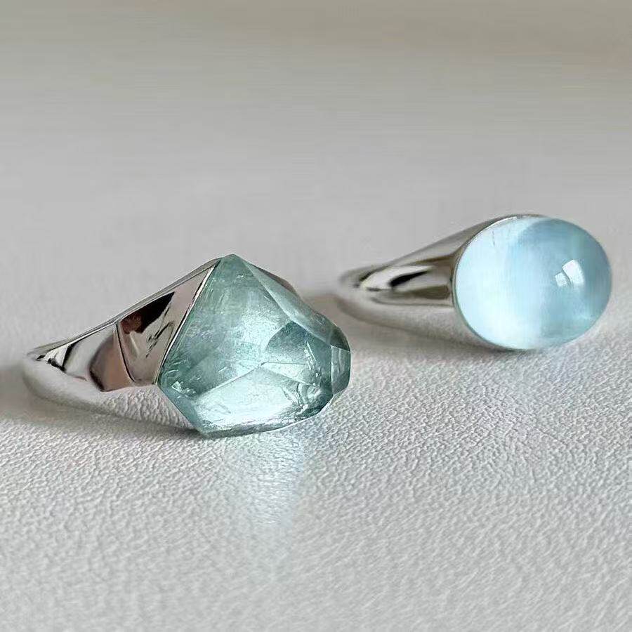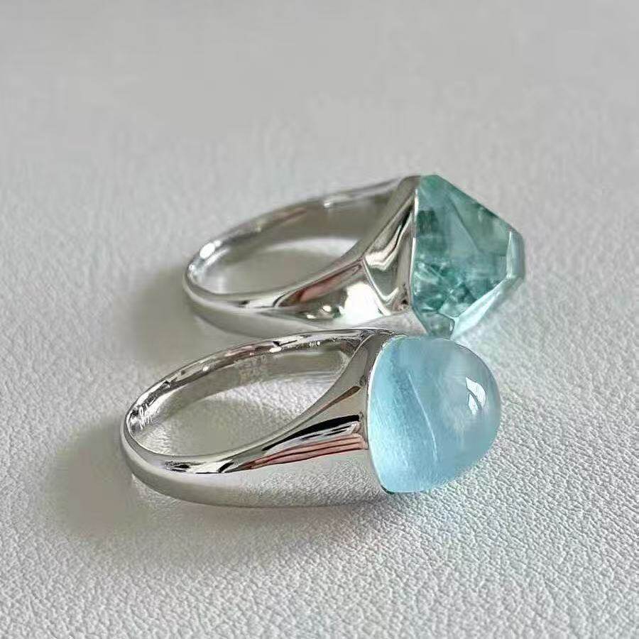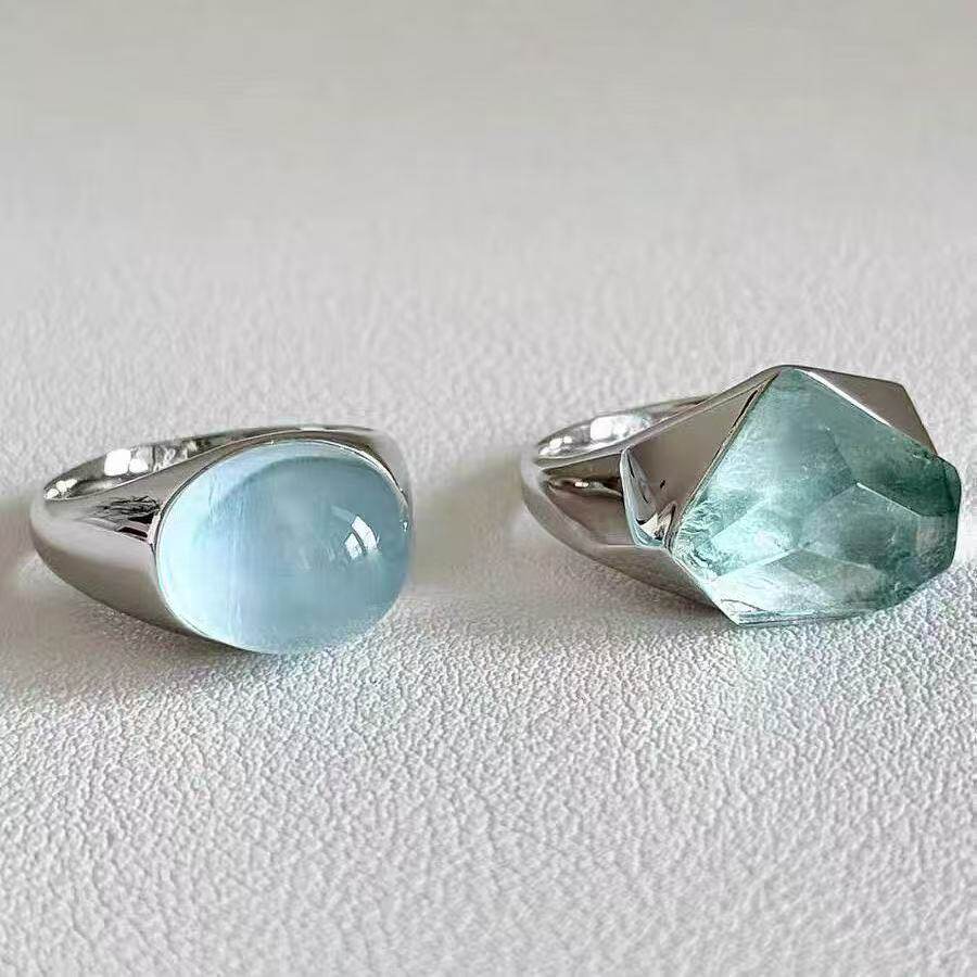 不规则几何蓝色水滴戒指女轻奢高级感小众独特清冷感个性百搭指环