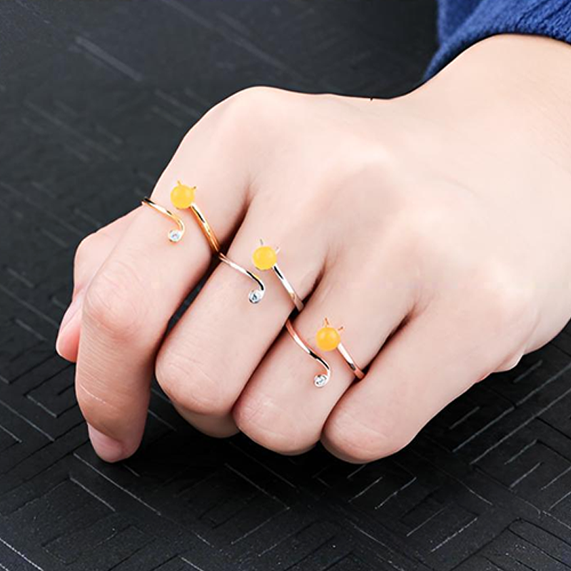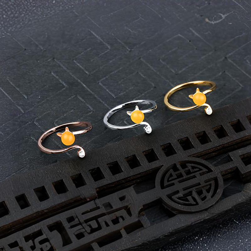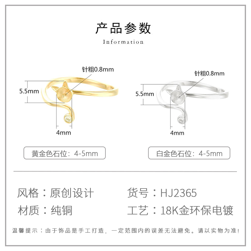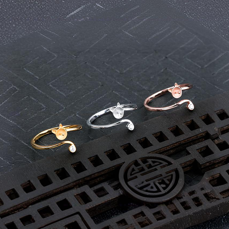 猫咪戒指空托女镶嵌水晶招桃花开口戒指托diy珍珠戒指托配件4-5mm