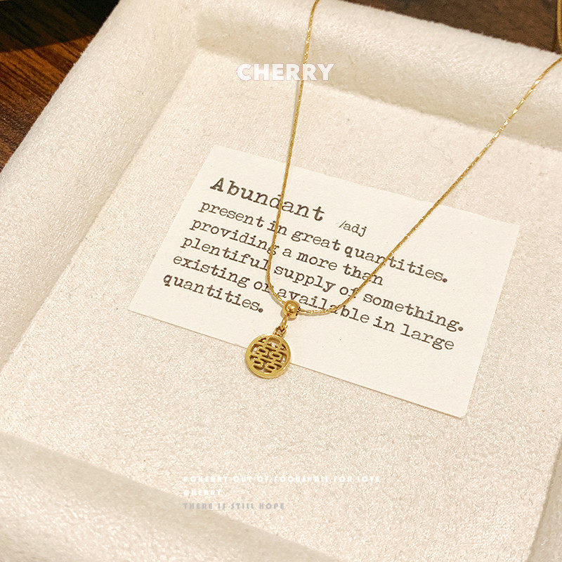 新中式喜字圆牌钛钢锁骨链女小众设计感国潮项链简约个性百搭颈链