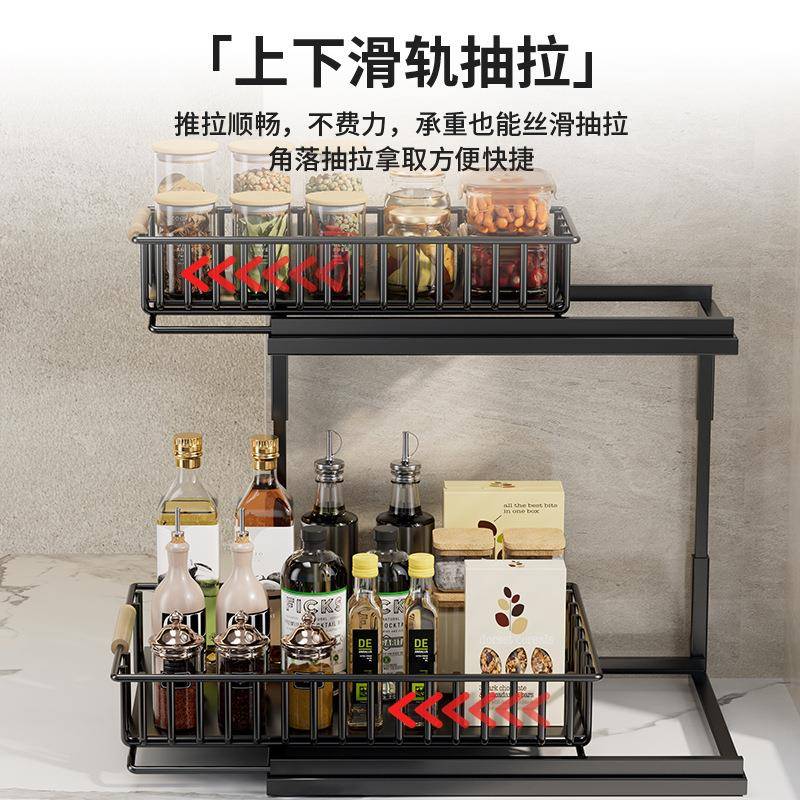 厨房下水槽橱柜置物架多功能分层架调料拉篮抽拉式收纳架子