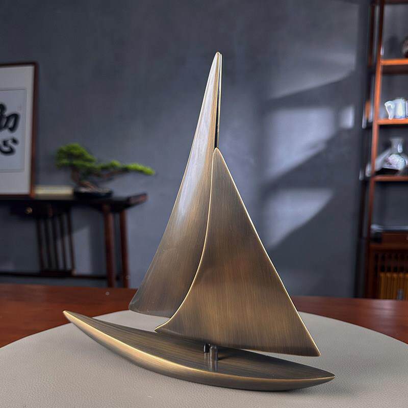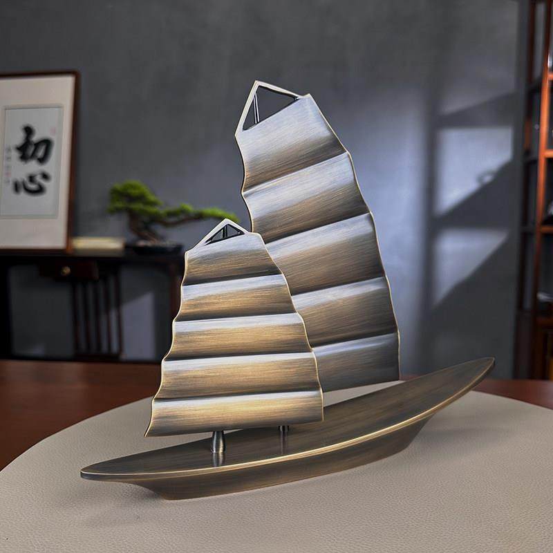 办公件室摆YFQH高老板桌面端大气轻奢黄一帆风顺帆船客厅酒柜装饰