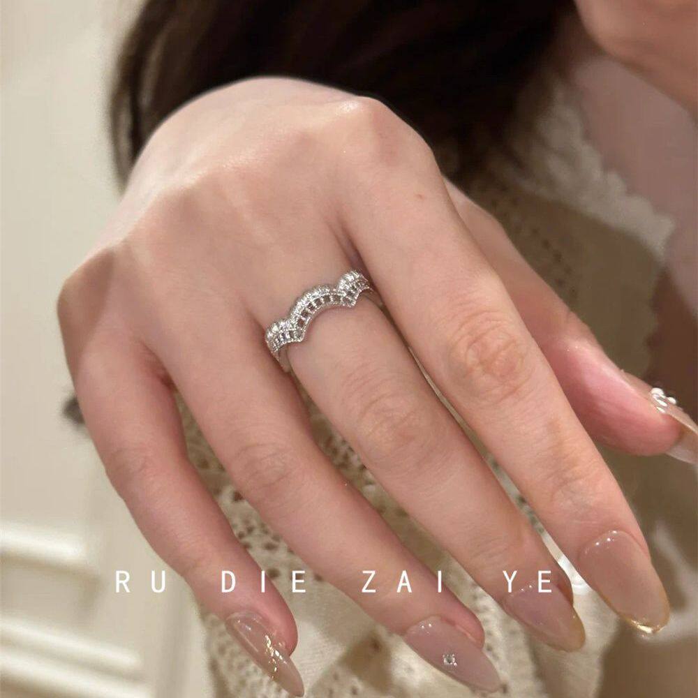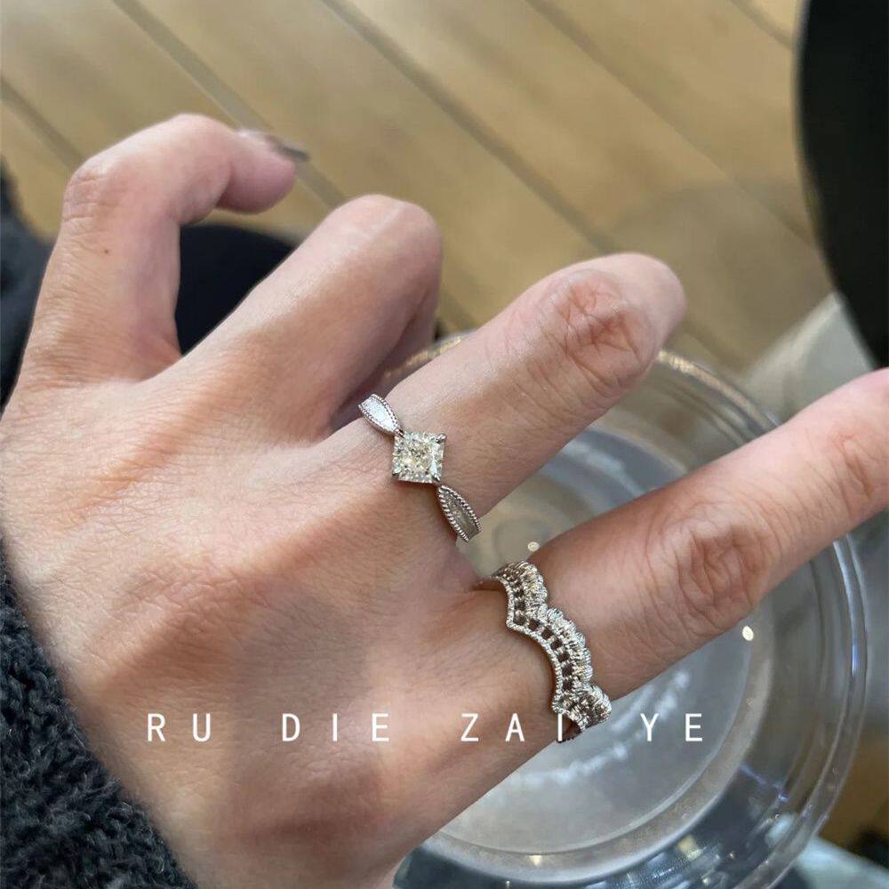 如蝶在野 加冕女王~中古vintage蕾丝皇冠戒指轻奢高级方钻开口戒