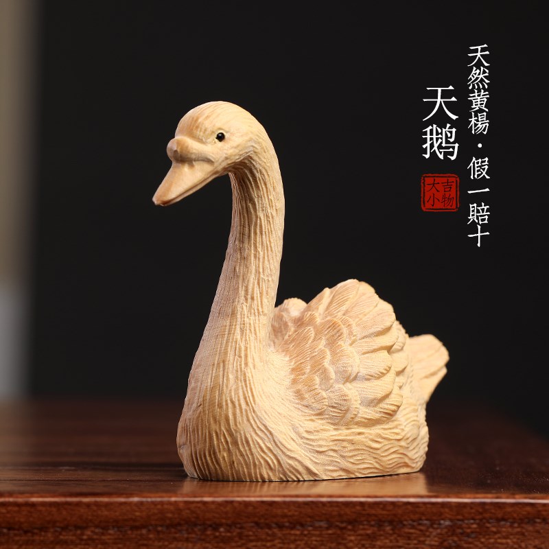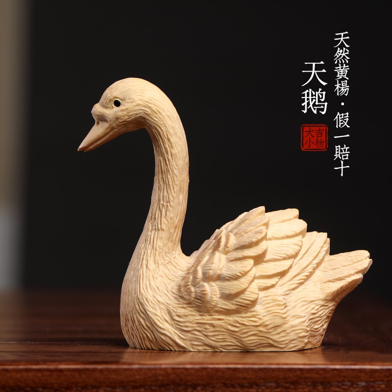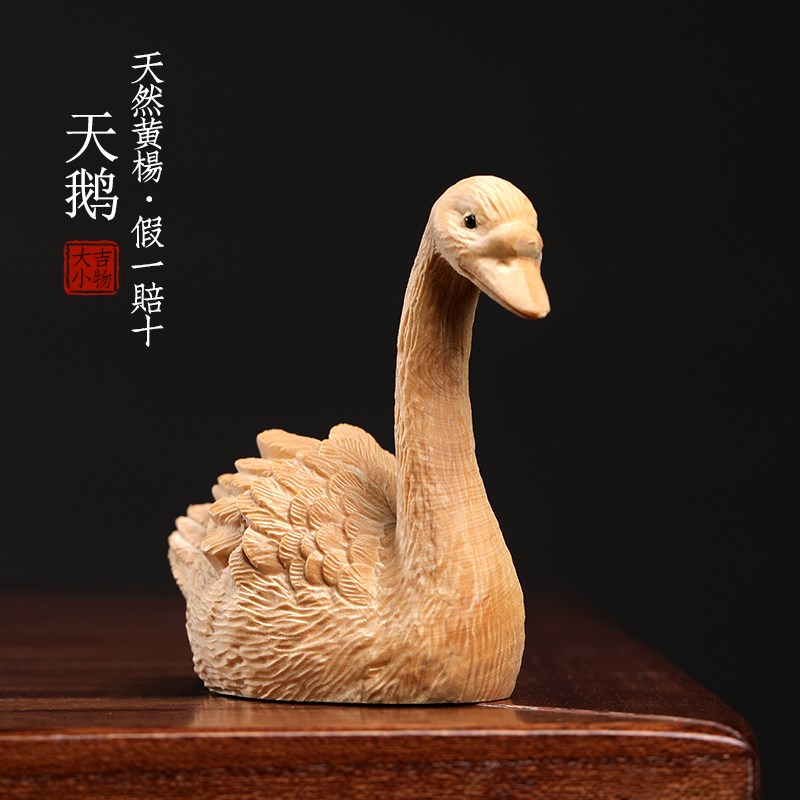 天然小叶黄杨木雕天鹅汽车摆件手把件文玩送礼家居装饰桌面工艺品