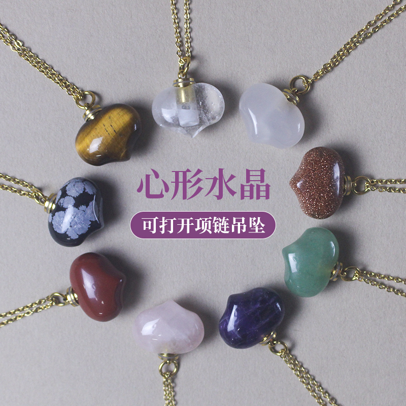 天然玉石水晶香水香薰精油瓶项链吊坠锁骨项链空心瓶项链吊坠