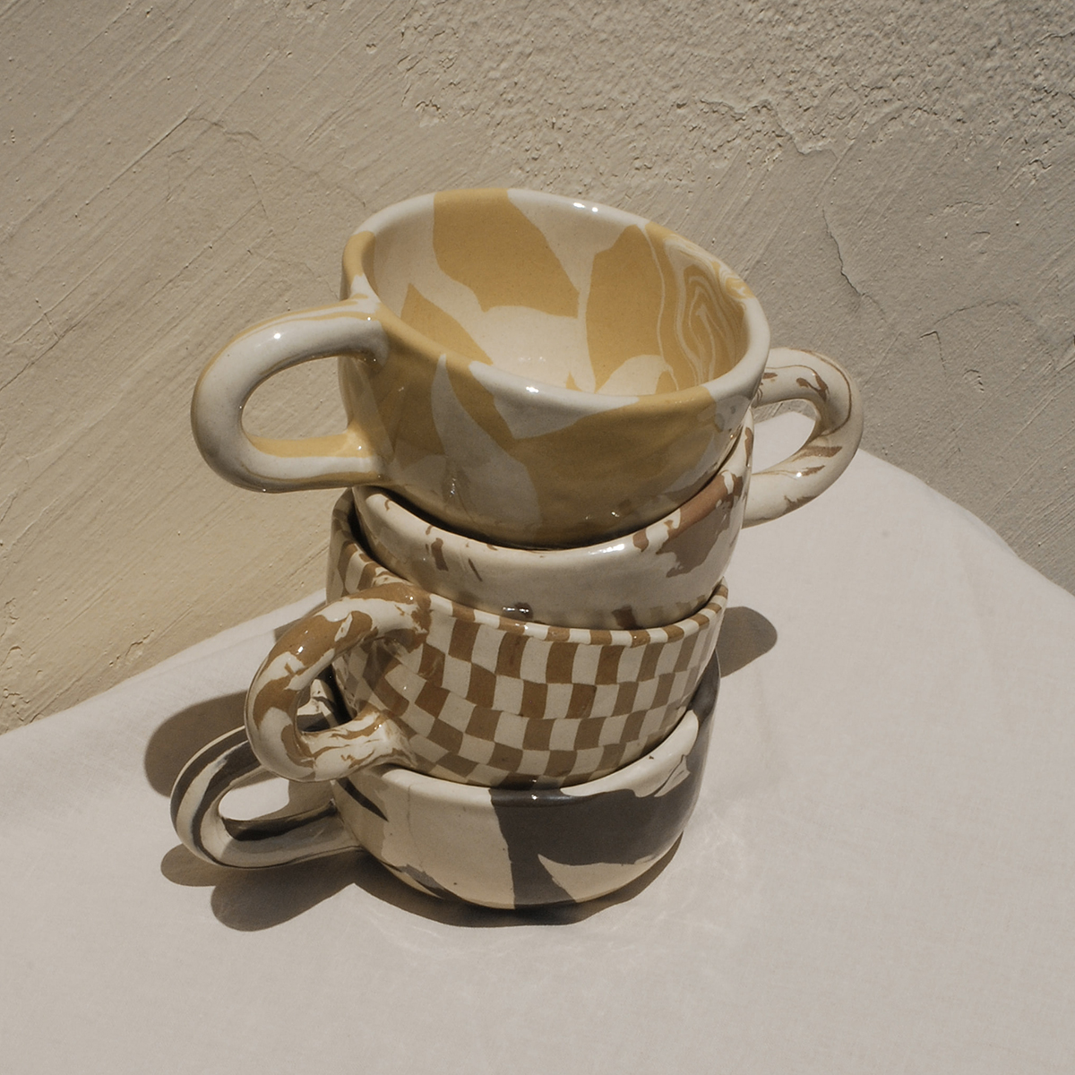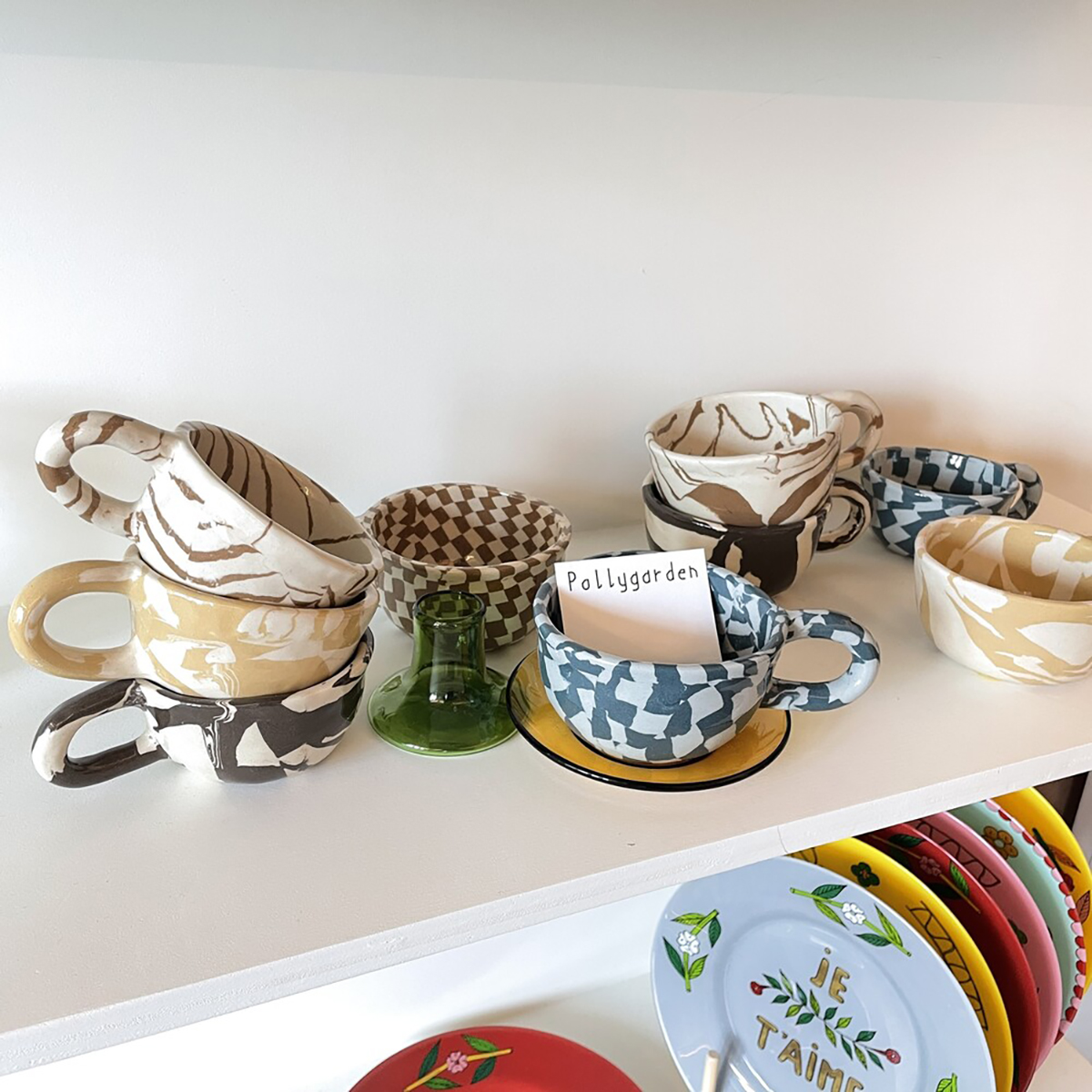 EDITOR01韩国PollyGarden不规则棋盘格马克杯大理石纹拿铁杯