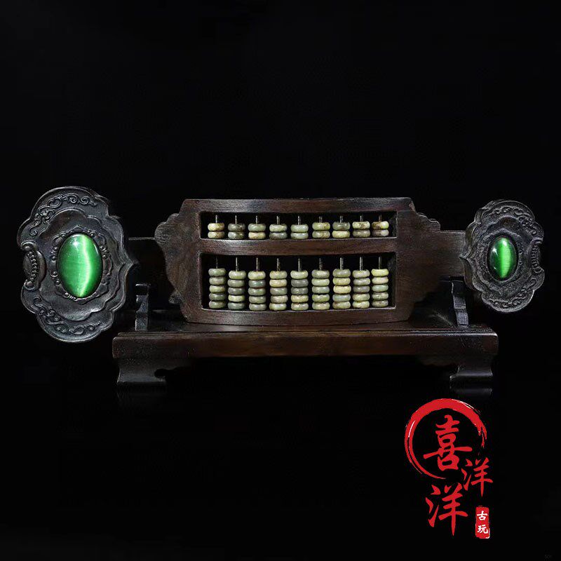 古董文玩纯实木带底座玉石珠子檀木如意算盘家用摆件复古老物件