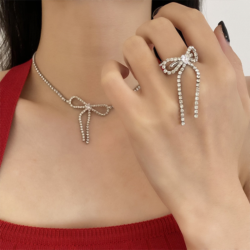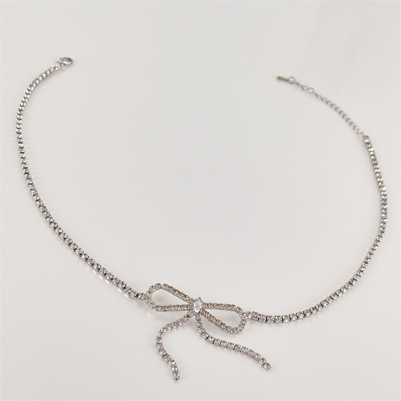 ins小众精致仙女满钻锆石蝴蝶结流苏项链 甜美温柔风气质锁骨链