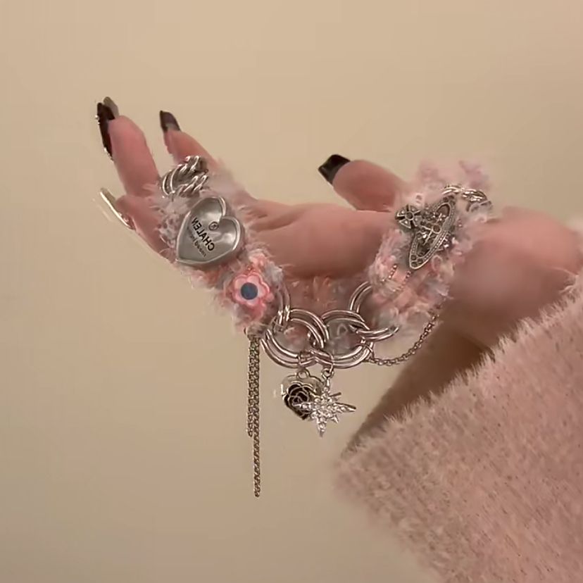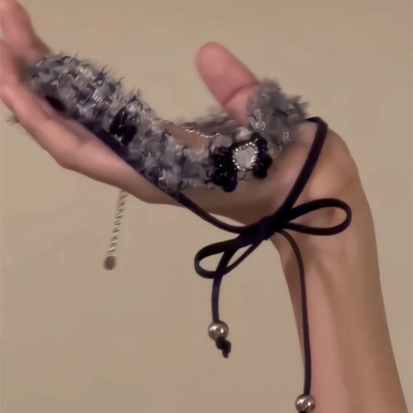 千金小香 毛绒绒灰色蝴蝶结双层项链锁骨链甜酷风秋冬本命choker