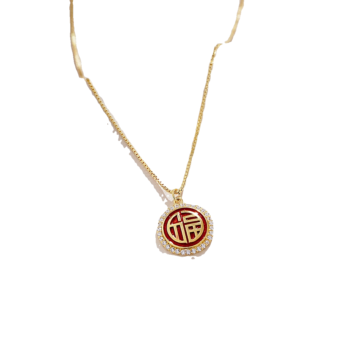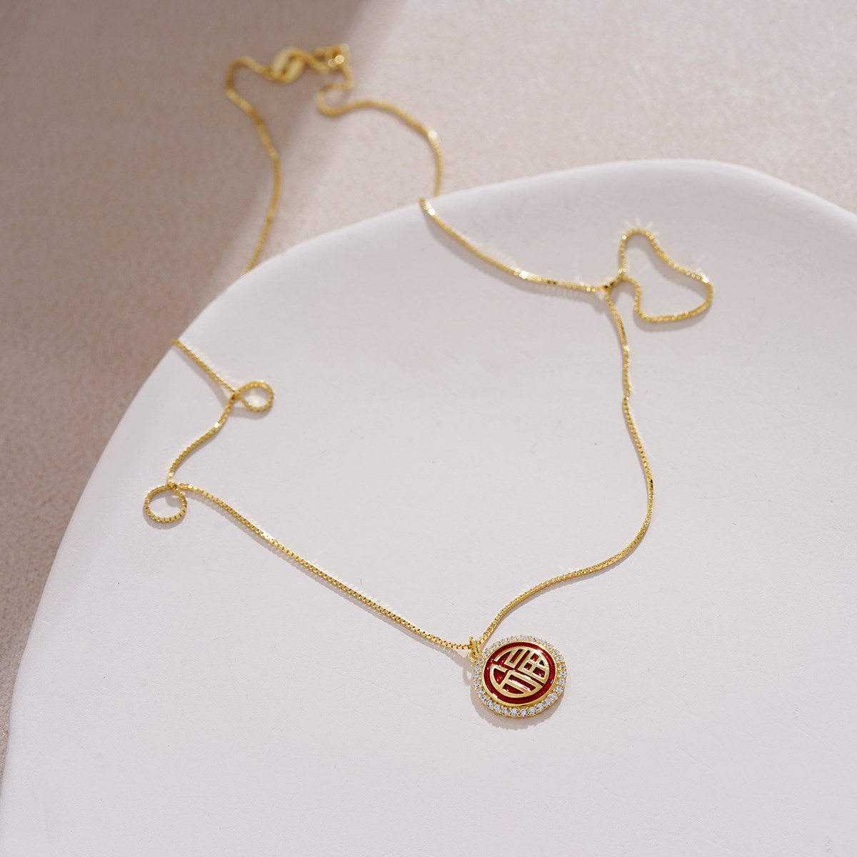 925通体银红色福字短款项链适合过年的新款锁骨链超细精致颈链女