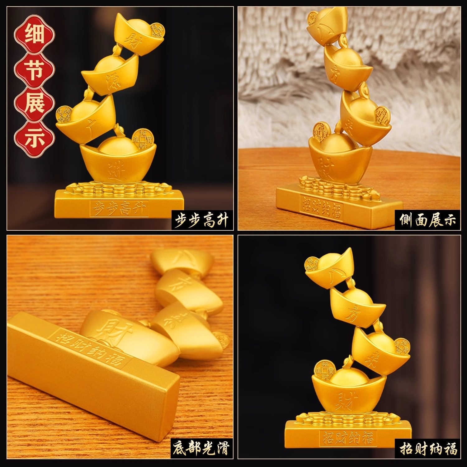 步步高升金色元宝招财进宝创意摆件金属工艺家居饰品装饰桌面摆件
