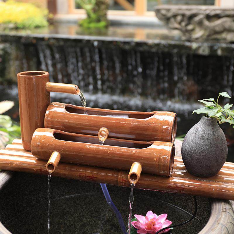 陶瓷鱼缸流水竹子循环水摆件竹筒流水器石槽过滤器办公室流水招财