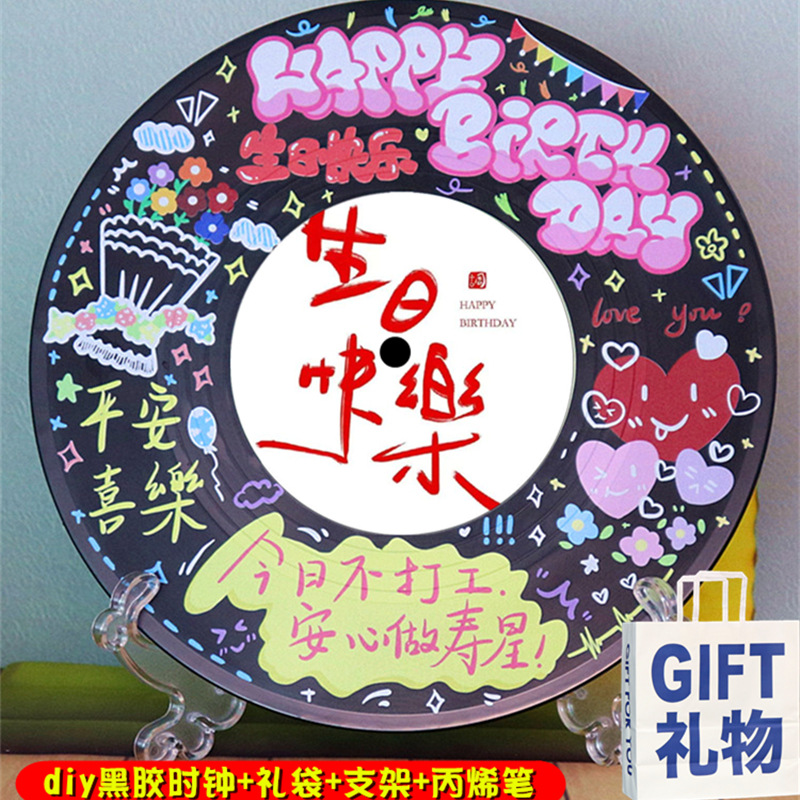 网易黑胶唱片diy定制手工周杰伦创意时钟装饰送闺蜜生日快乐礼物