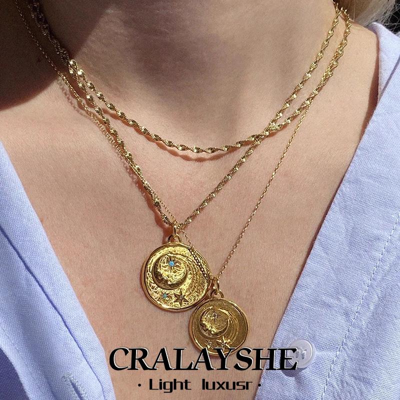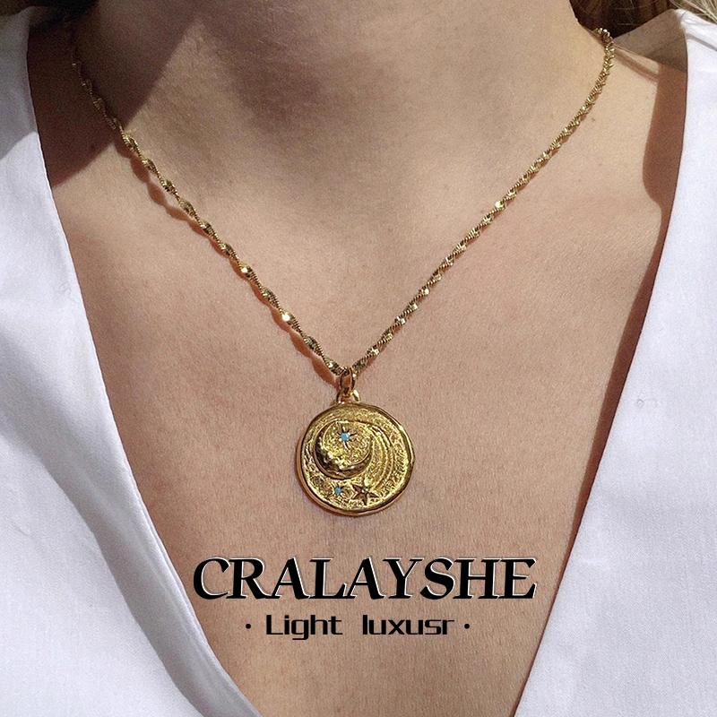 欧美日月金币圆牌项链女轻奢高级感锁骨链镀18K金