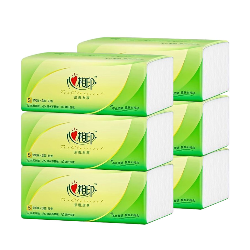 心相印抽纸330张纸巾茶语3层6大包家用实惠装面巾纸餐巾卫生纸抽