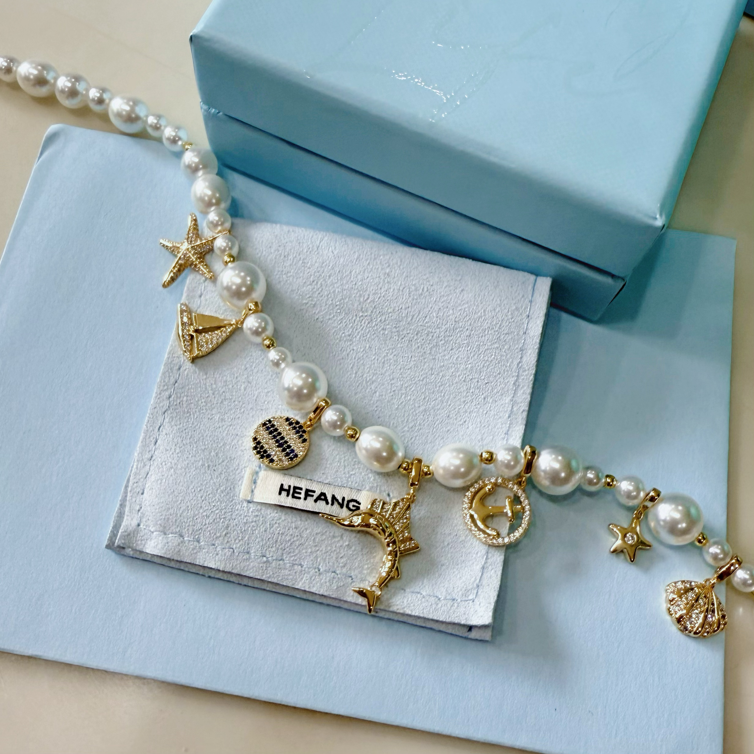hefang925纯银何方海洋奇遇项链闪闪海星耳环海贝锁骨链耳钉饰品