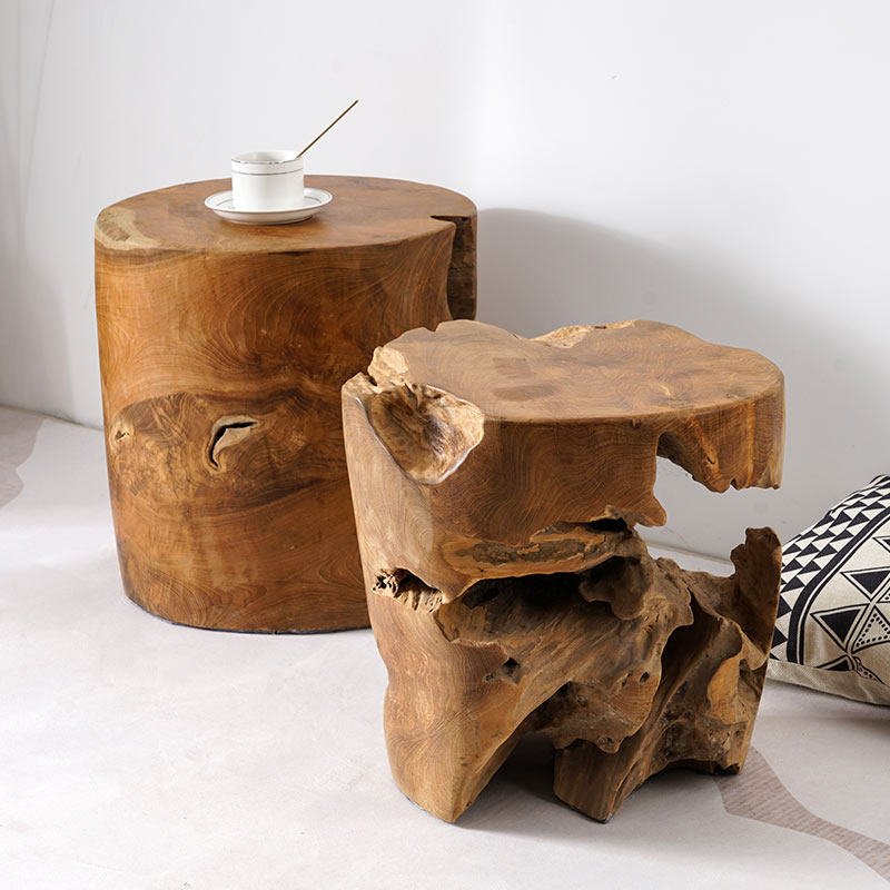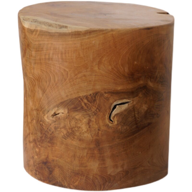 老柚木凳子原木样板房客厅实木装饰摆件设计师家具木墩子茶几侘寂